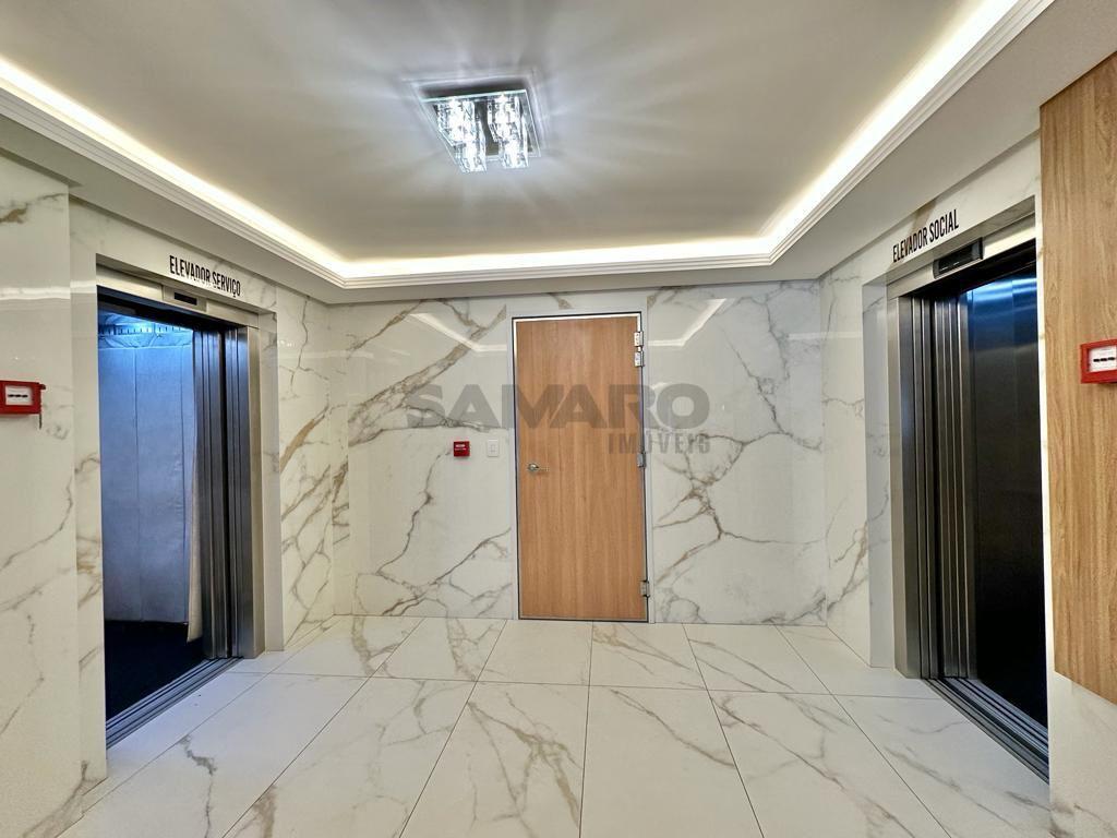 Edifício com dois elevadores, portão e porteiros eletrônicos, circuito de câmeras de segurança, hall de entrada decorado, fachada revestida em pastilhas e serviço de zeladoria.
