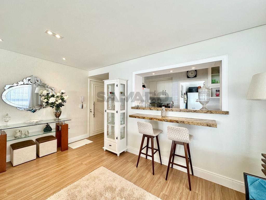 Amplo apartamento composto por 3 dormitórios sendo um suíte, banheiro social, lavabo, living em dois ambientes integrado a sacada gourmet com churrasqueira, cozinha estilo americana, área de lavanderia, uma vaga de garagem, espera para ar condicionado split e água quente, medidores de água e gás individuais.