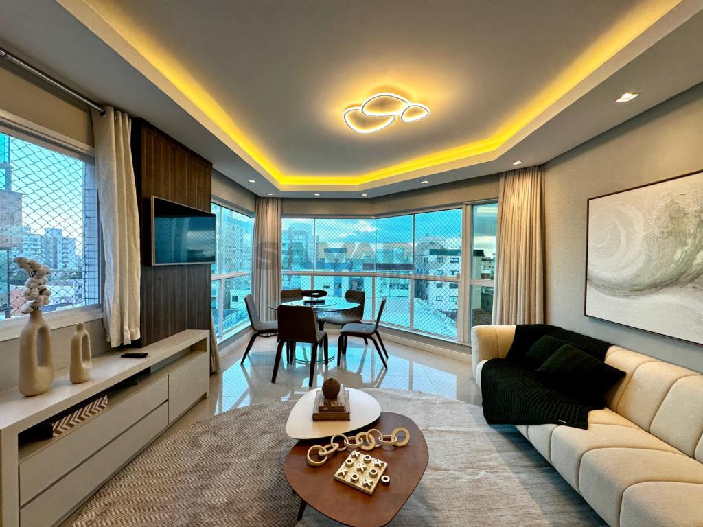 apartamento de frente 03 dormitórios mobiliado e decorado sendo uma suíte ,living estendido,cozinha, área de serviço,lavabo, climatizado box de garagem .