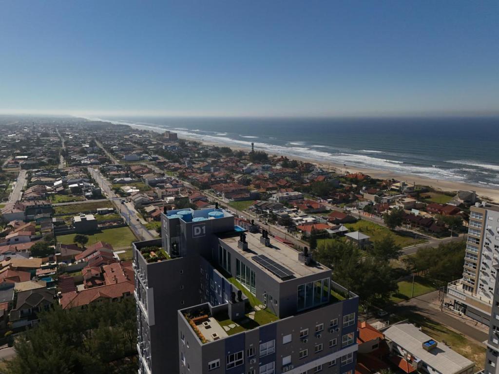 Localizado a poucos metros do mar, bairro zona nova, alto padrão construtivo, infra estrutura completa no último andar, hall de entrada decorado com dois elevadores, água e gás individual, esquadrias em PVC, portão e porteiro eletrônico.