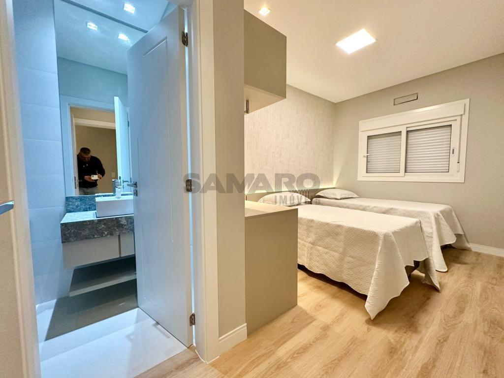 Amplo apartamento 3 dormitórios sendo todos suítes, lavabo, sacada de frente, amplo living, cozinha, churrasqueira, lavanderia, orientação solar Oeste/Norte, garagem, acabamento fino de bom gosto e muito bem construído.