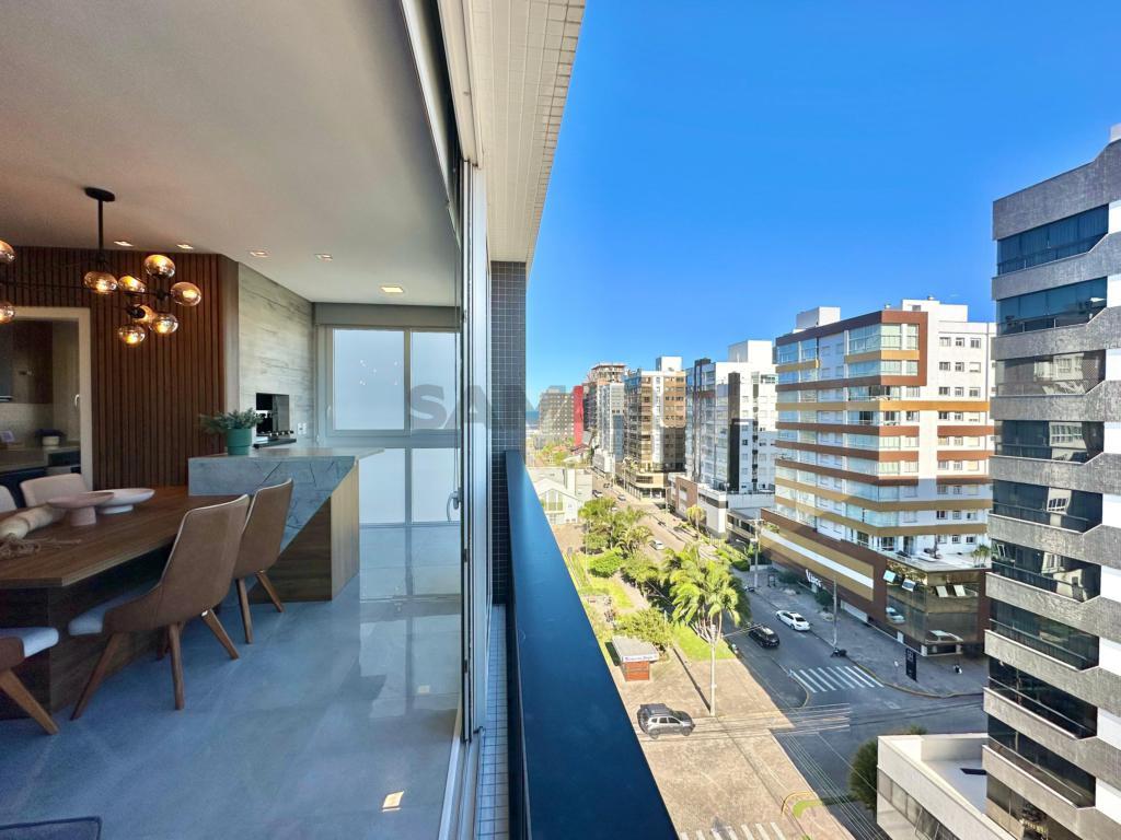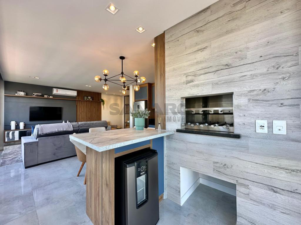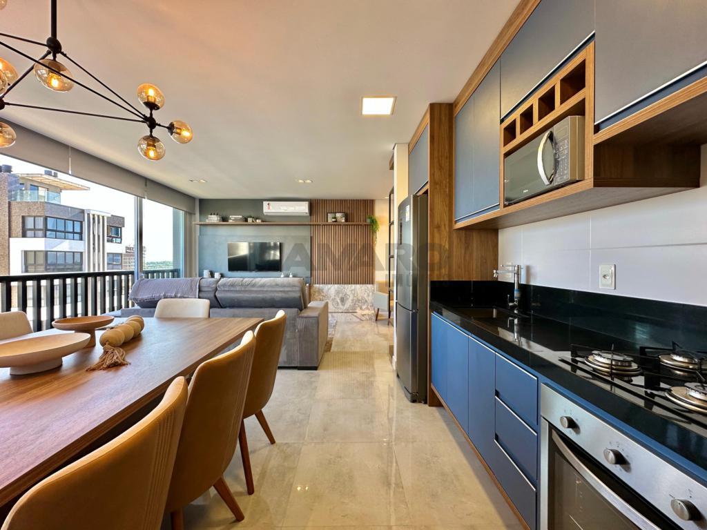 Lindo apartamento de frente com vista para a praça. Apartamento com 03 dormitórios, suíte, banheiro social, lavabo, cozinha americana, amplo living de 3 ambientes, churrasqueira com espetos rotativos, com box duplo, totalmente mobiliado e decorado.
