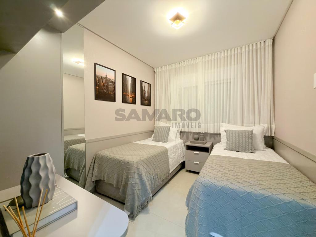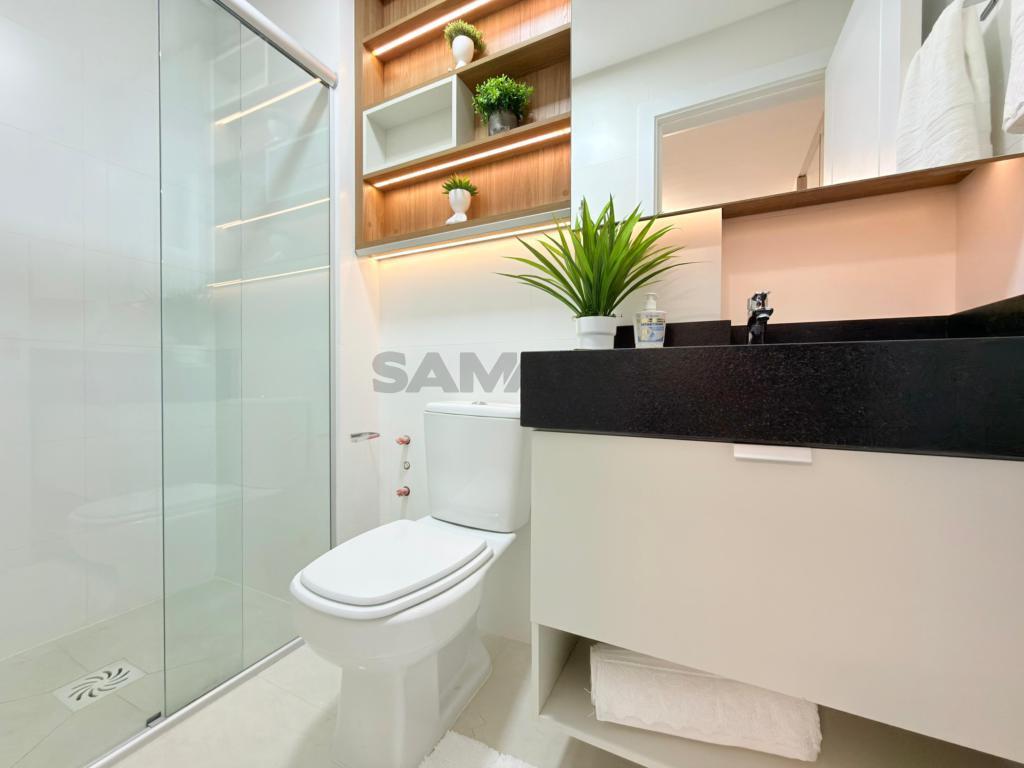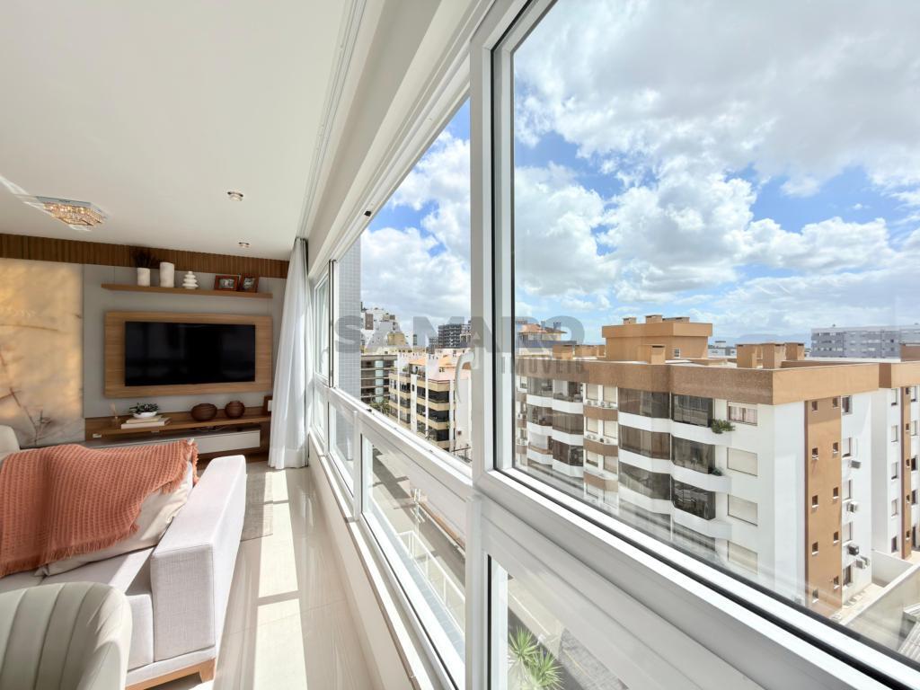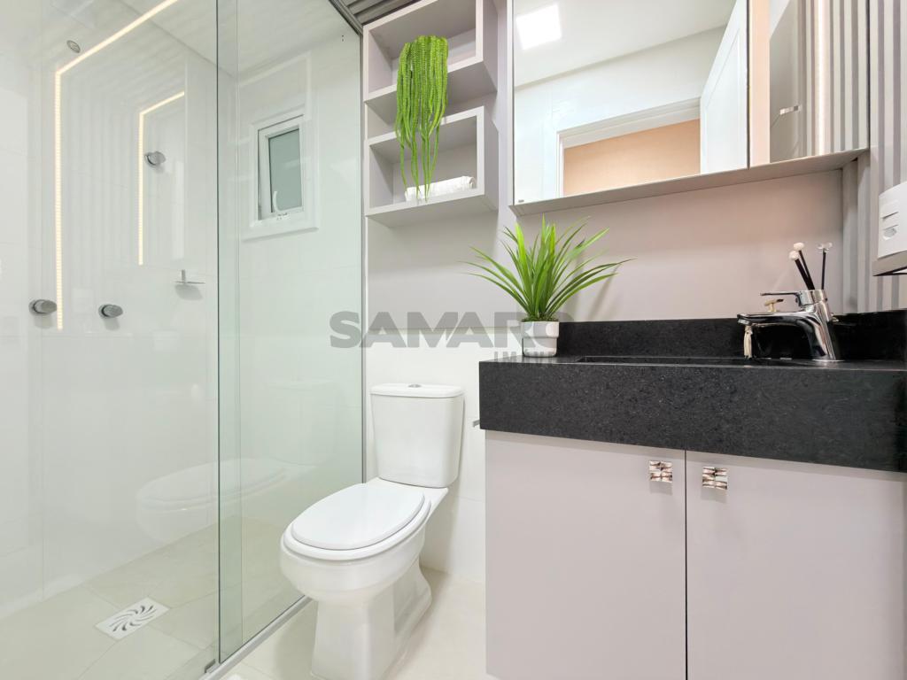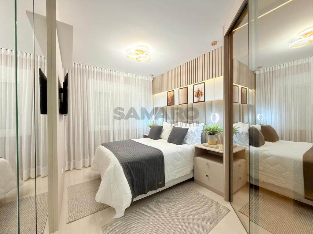 Edifício com hall decorado, 2 elevadores, sensor facial de acesso, piscina, academia, 2 salões de festas, espaço kids, espaço gamer, rooftop com vista 360 para o mar, serra e cidade.