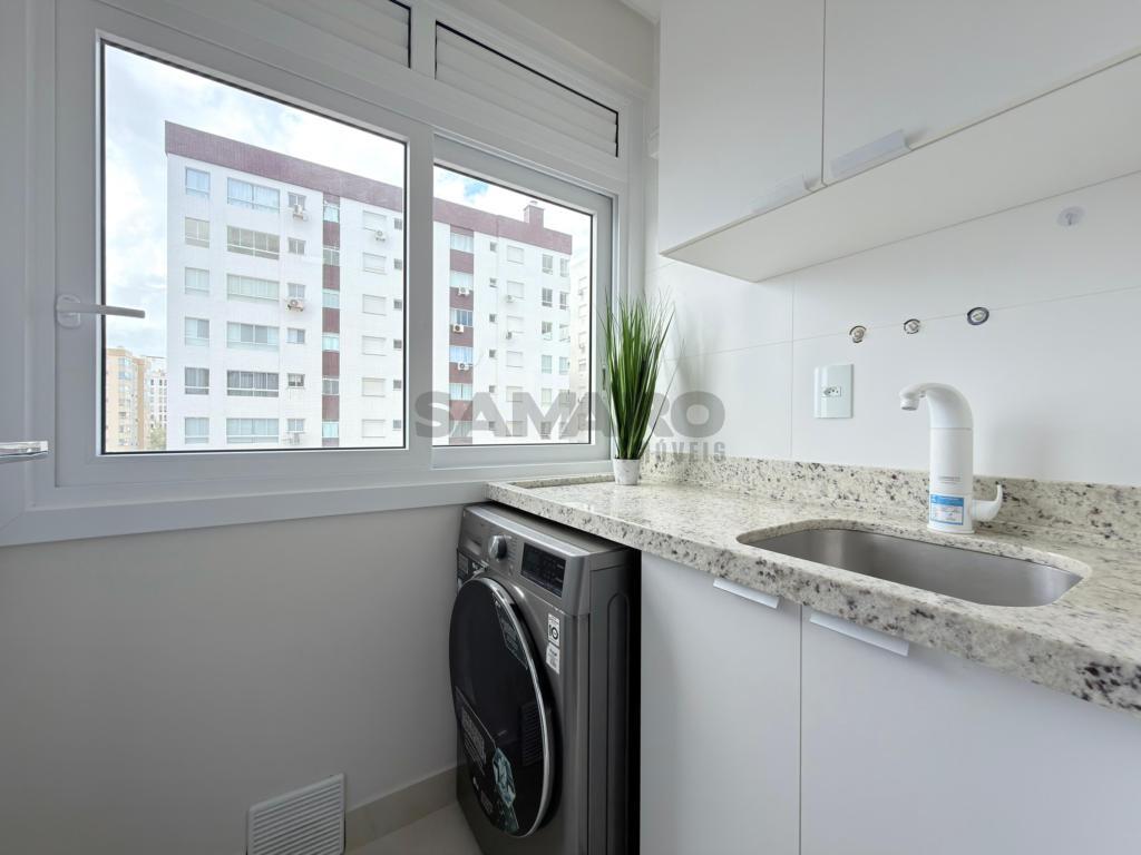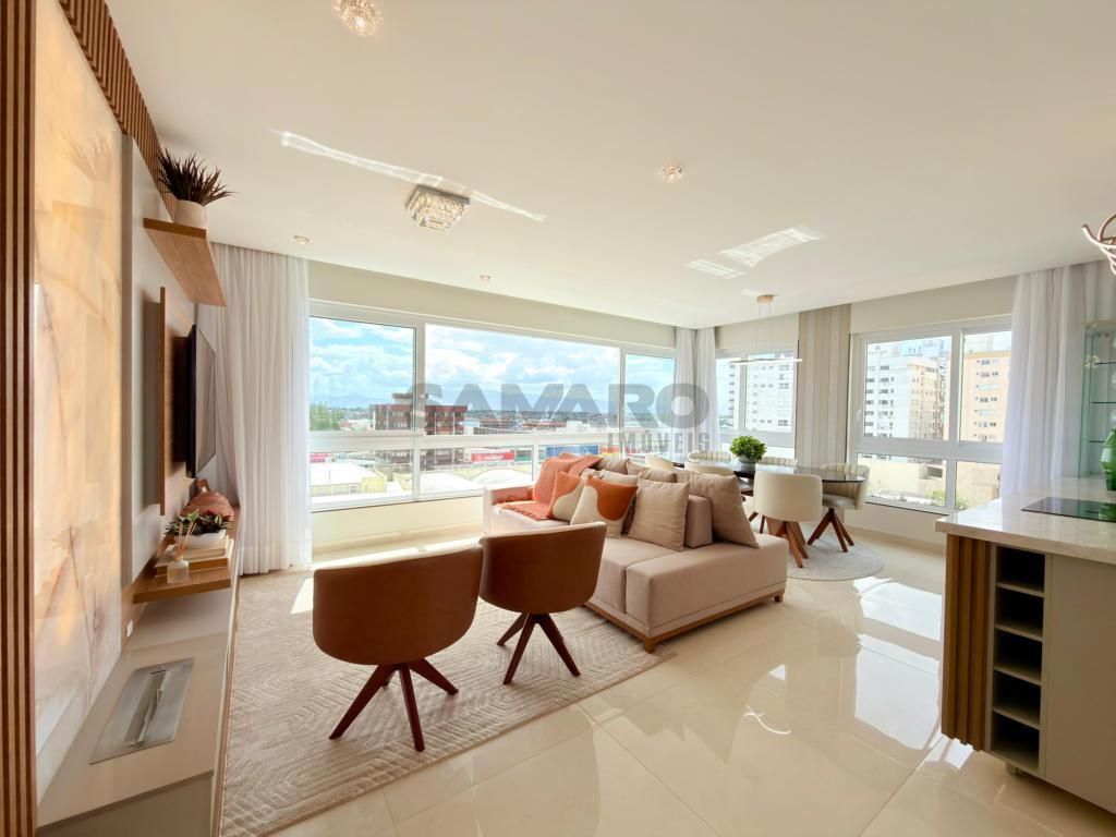 Apartamento com 03 dormitórios (1 suite), banho social, lavabo, living c/30m, cozinha, churrasqueira, lavanderia separada.