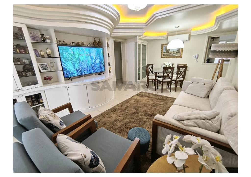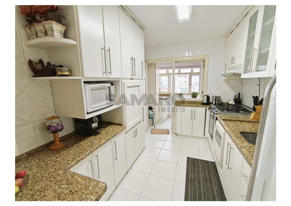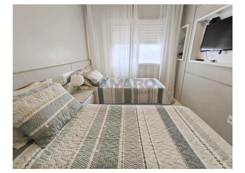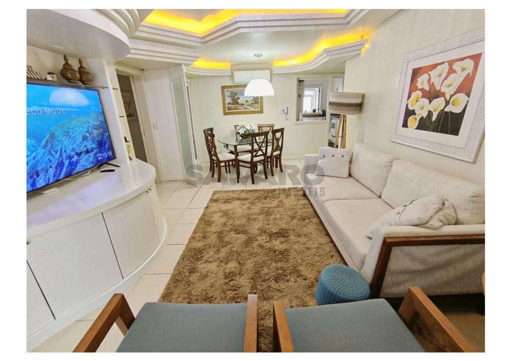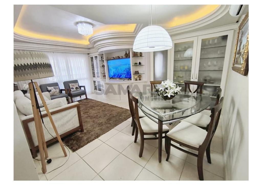 Apartamento de 3 dormitórios sendo um suíte, ampla sacada de frente com churrasqueira e vista eterna para o mar, living em dois ambientes, cozinha separada, área de lavanderia separada, banheiro social e duas vagas de garagem mais depósito, espera para água quente e ar condicionado split.