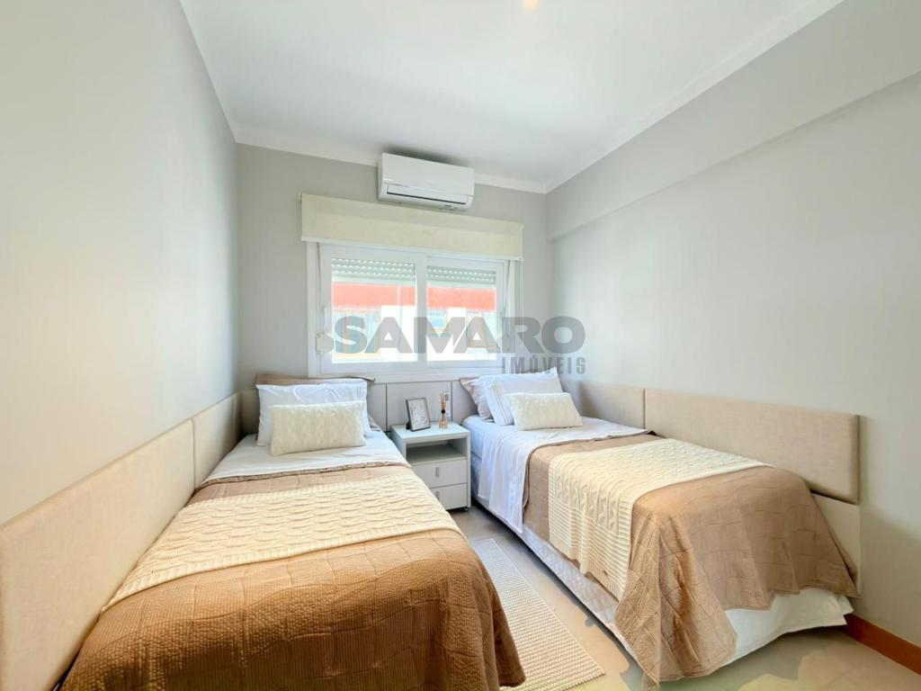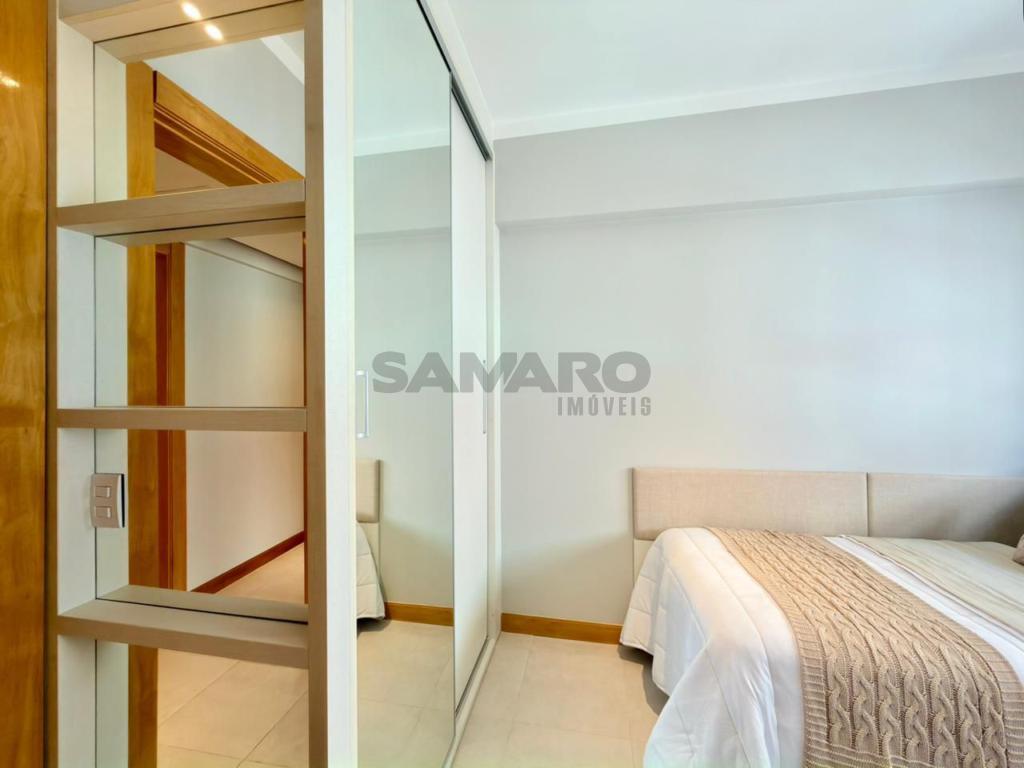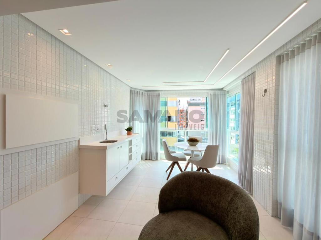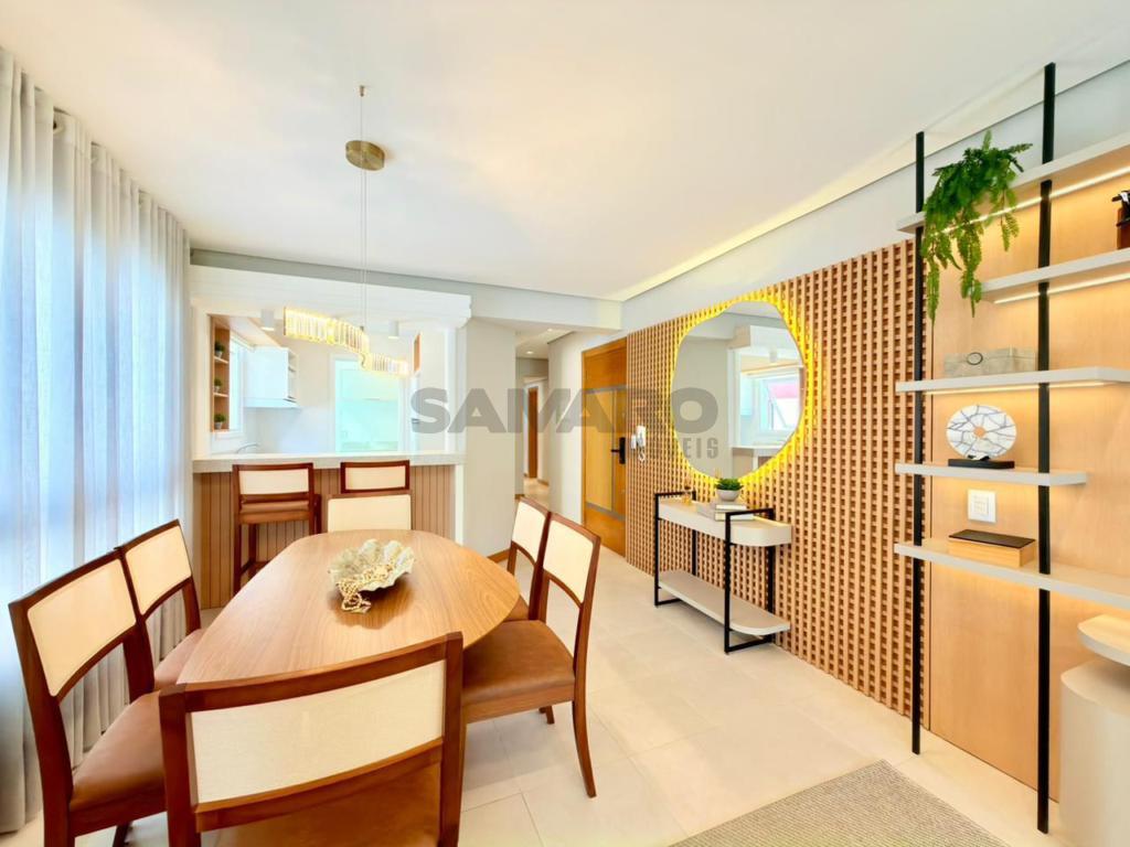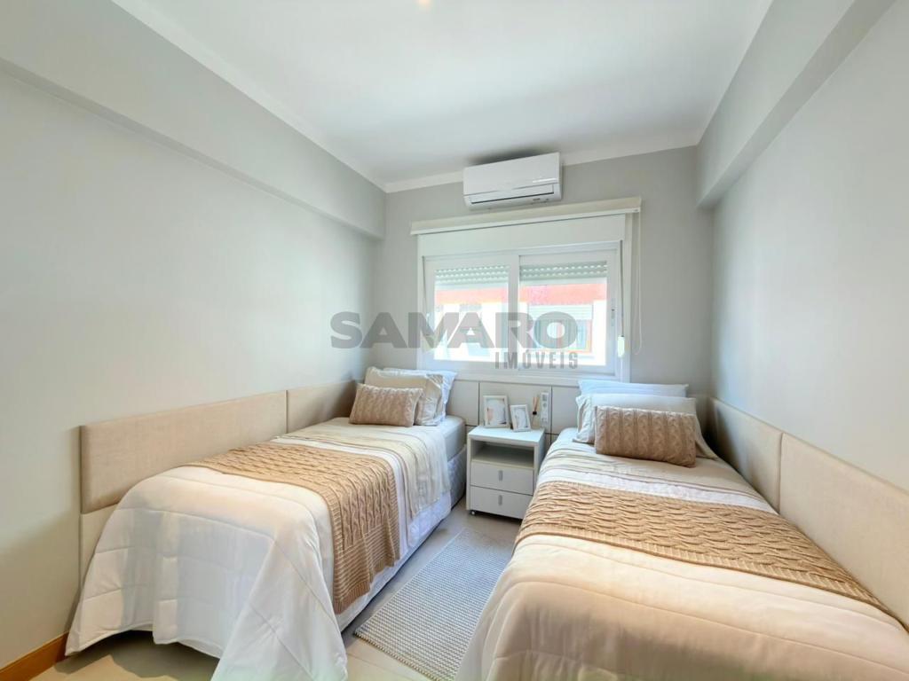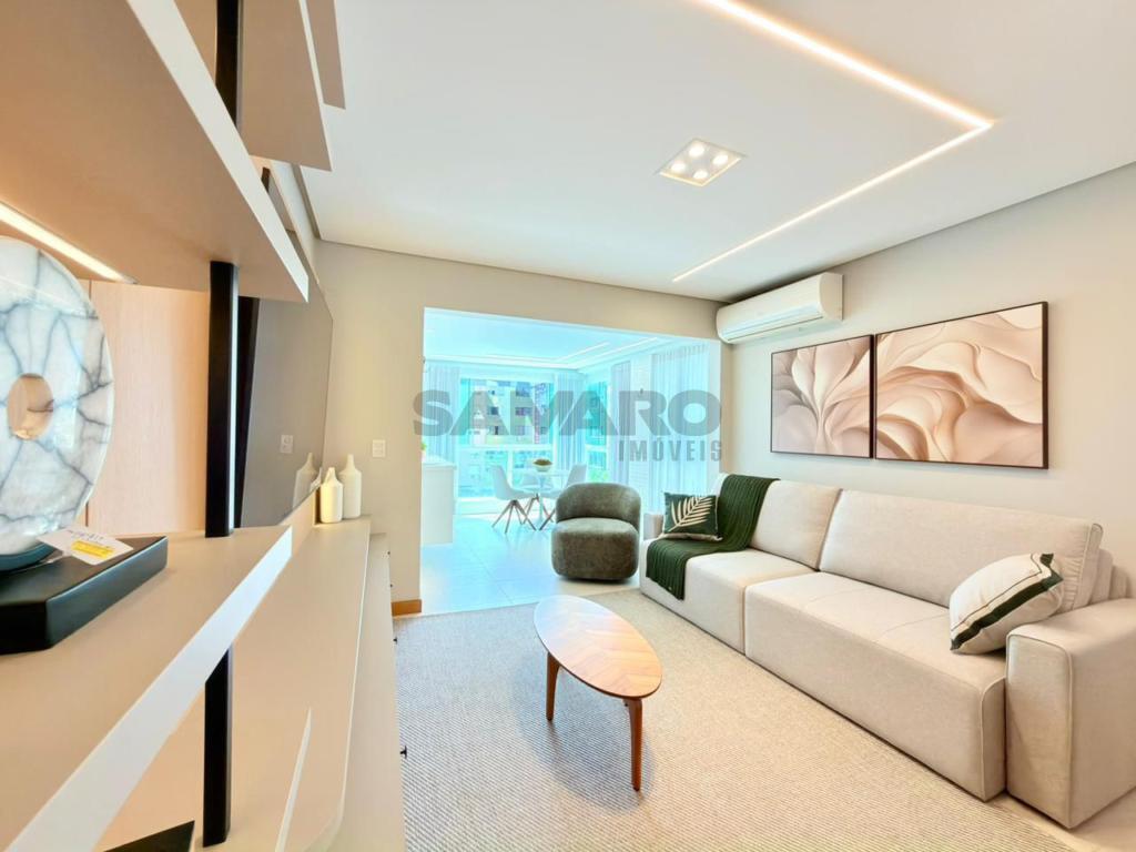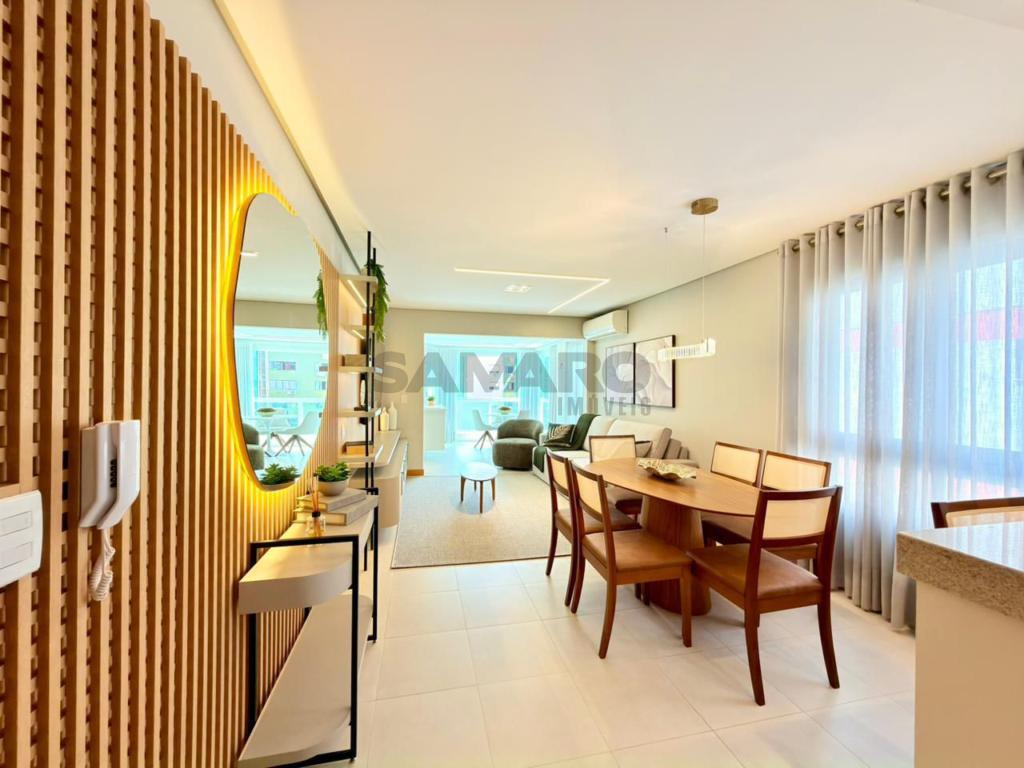 Apartamento composto por 3 quartos (sendo um suíte), living amplo em 3 ambientes integrados, sacada de frente com churrasqueira, cozinha estilo americana, área de lavanderia separada, banheiro social, 2 vagas de garagem, todos os ambientes climatizados, água quente e gás central, mobiliado e decorado.