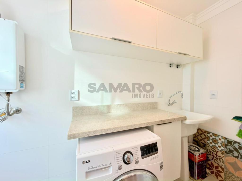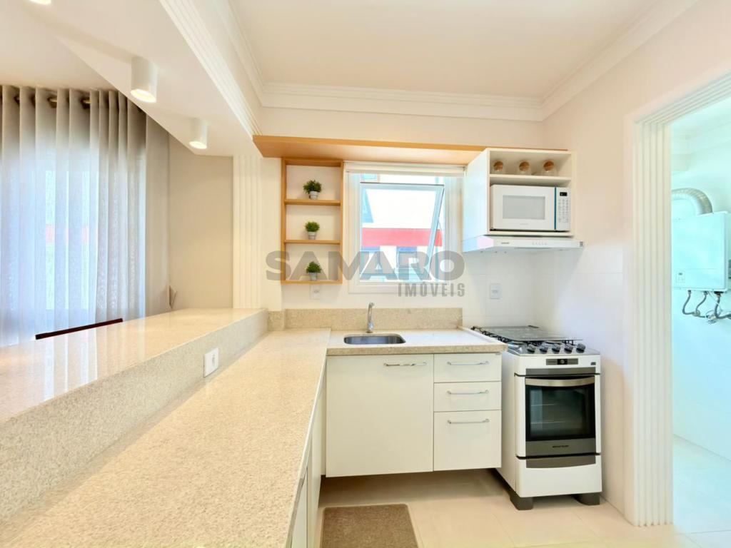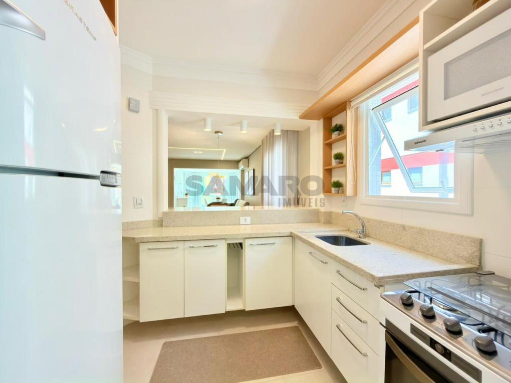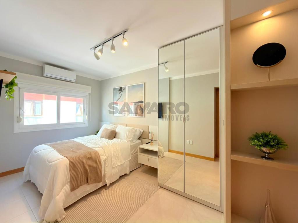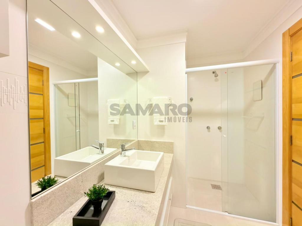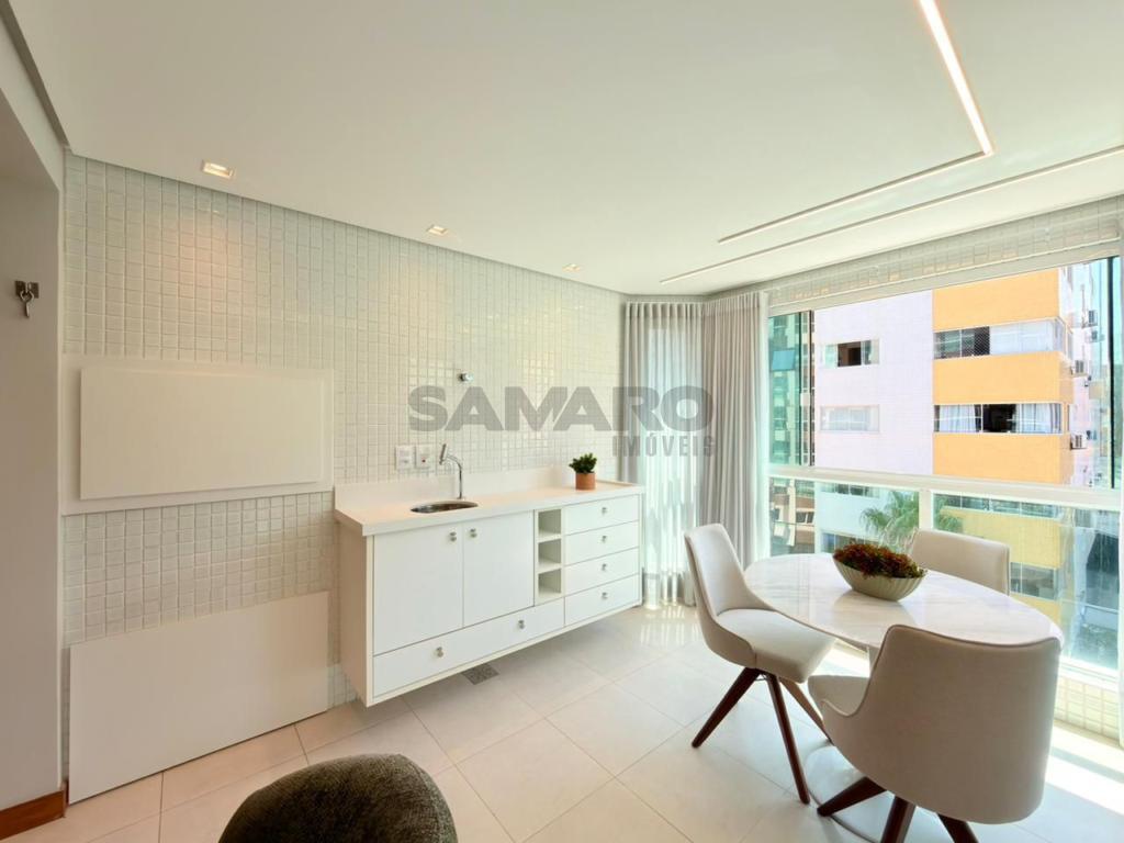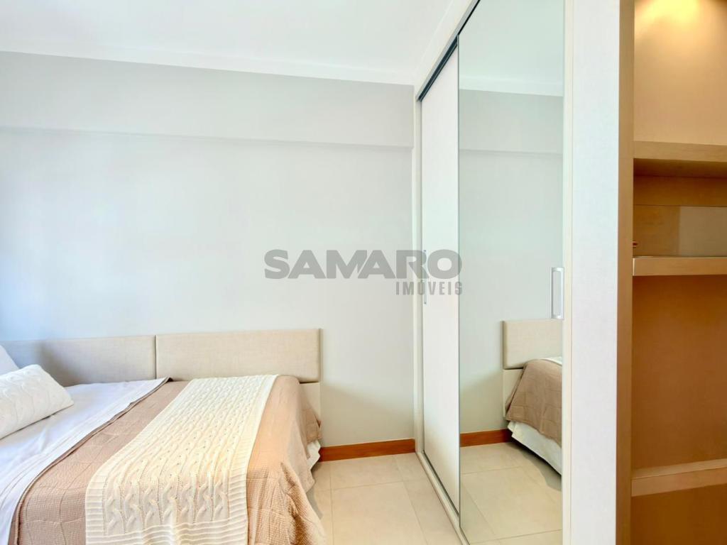 Apartamento composto por 3 quartos (sendo um suíte), living amplo em 3 ambientes integrados, sacada de frente com churrasqueira, cozinha estilo americana, área de lavanderia separada, banheiro social, 2 vagas de garagem, todos os ambientes climatizados, água quente e gás central, mobiliado e decorado.