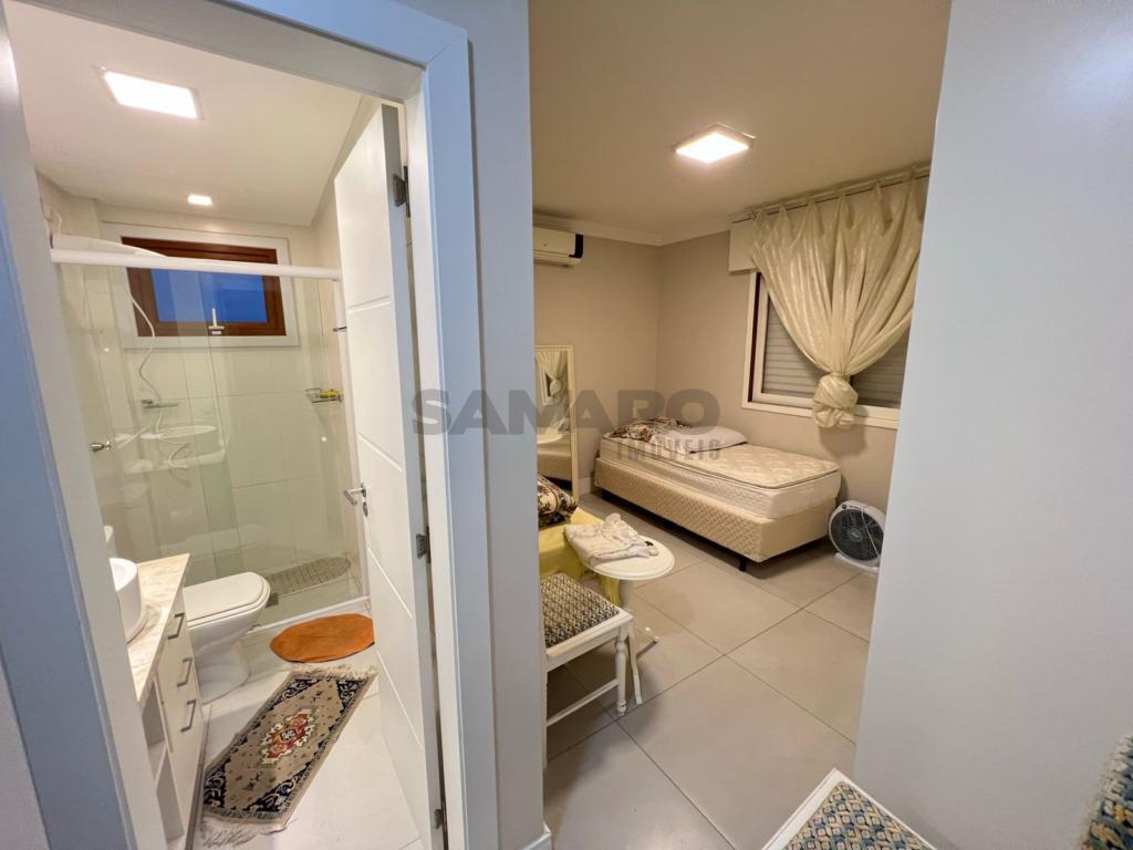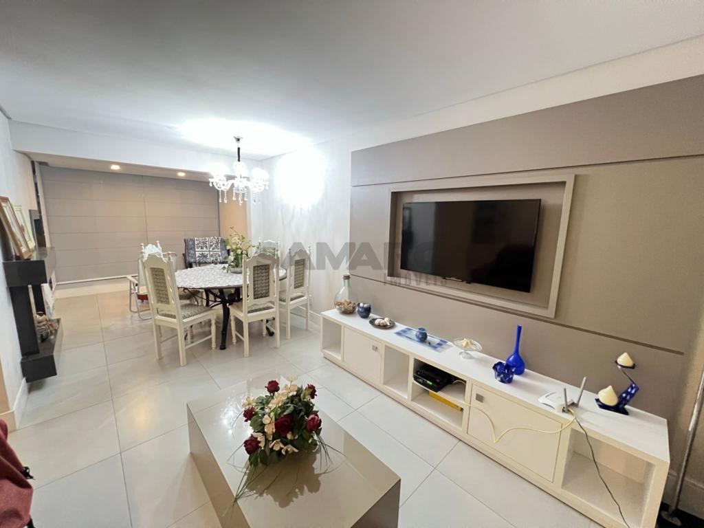 Apartamento de 03 dormitórios, sendo um suíte, banheiro social, living estar, jantar, cozinha, churrasqueira, de frente e com uma vaga de garagem.