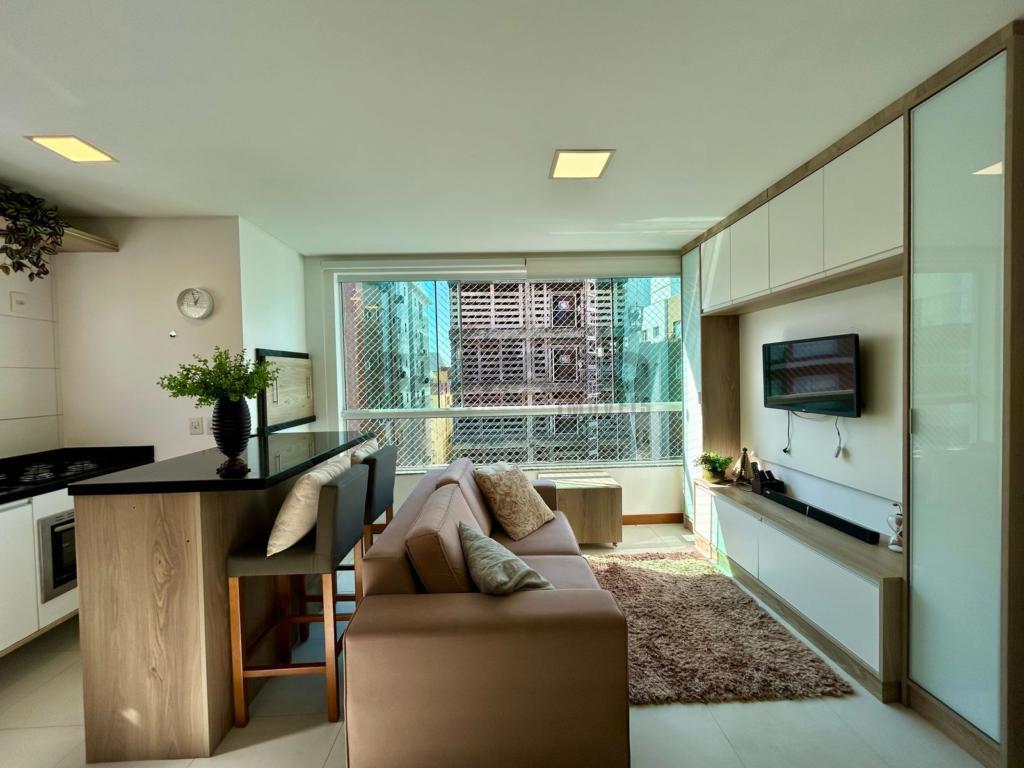 Apartamento de frente com 03 dormitórios sendo um suíte, banheiro social, living estar, jantar, cozinha estilo americana, churrasqueira, lavanderia independente, mobiliado, orientação solar Leste, norte e com uma vaga de garagem.