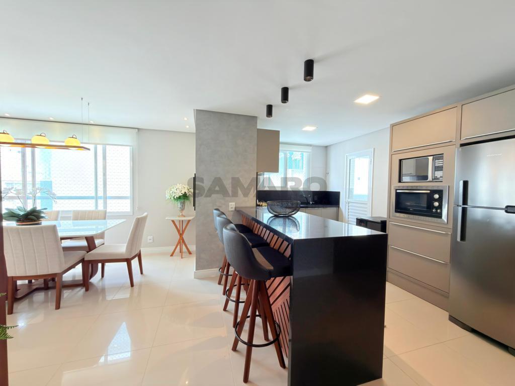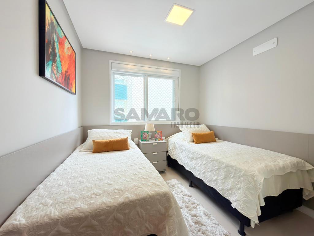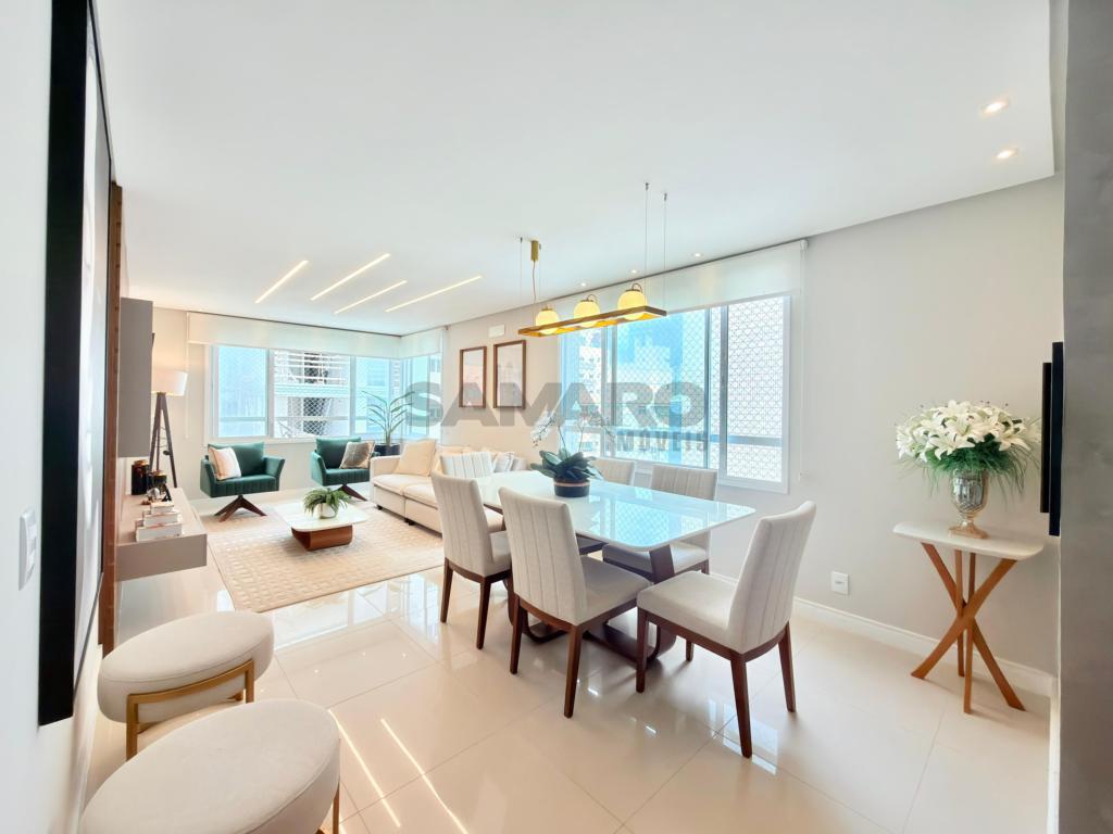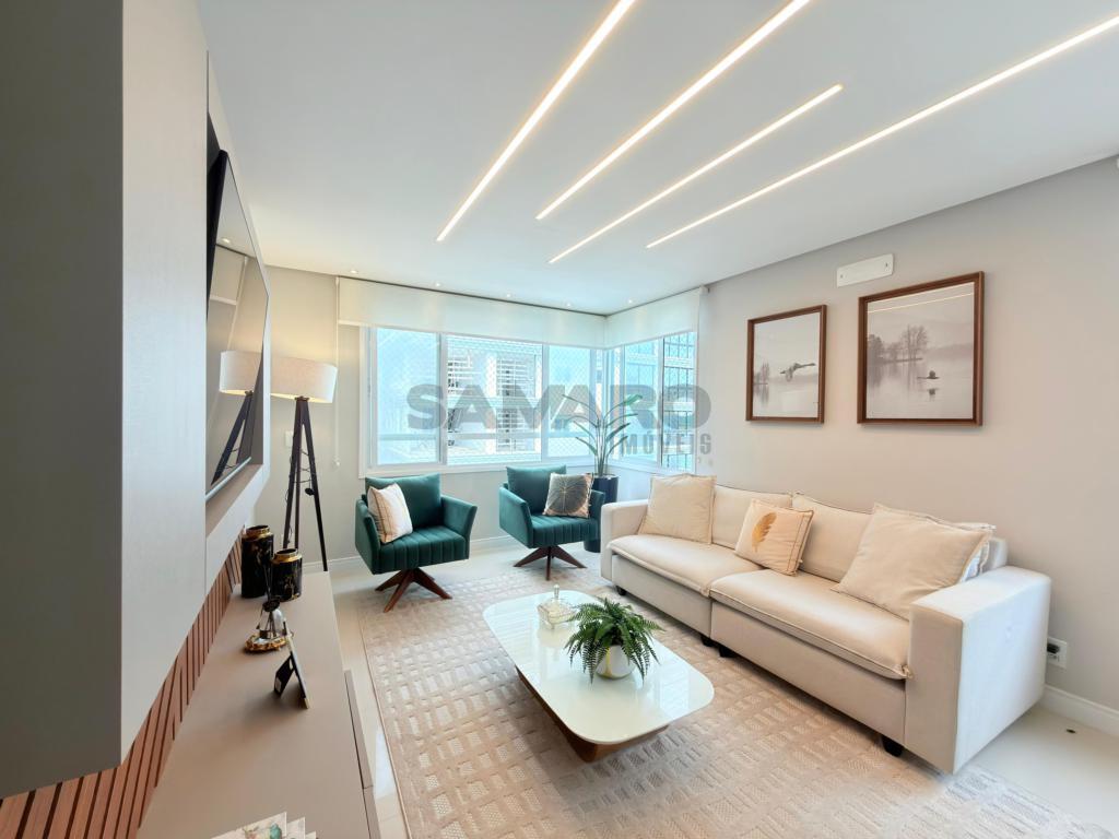 Apartamento composto por três dormitórios, sendo um suíte, banheiro social, living amplo em dois ambientes com vista para o mar, cozinha estilo americana, churrasqueira, área de lavanderia separada, uma vaga dupla de garagem, ambientes climatizados, espera para água quente, medidores de água e gás individuais.