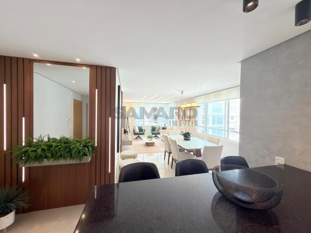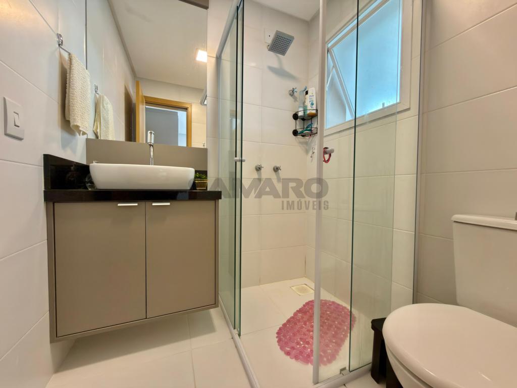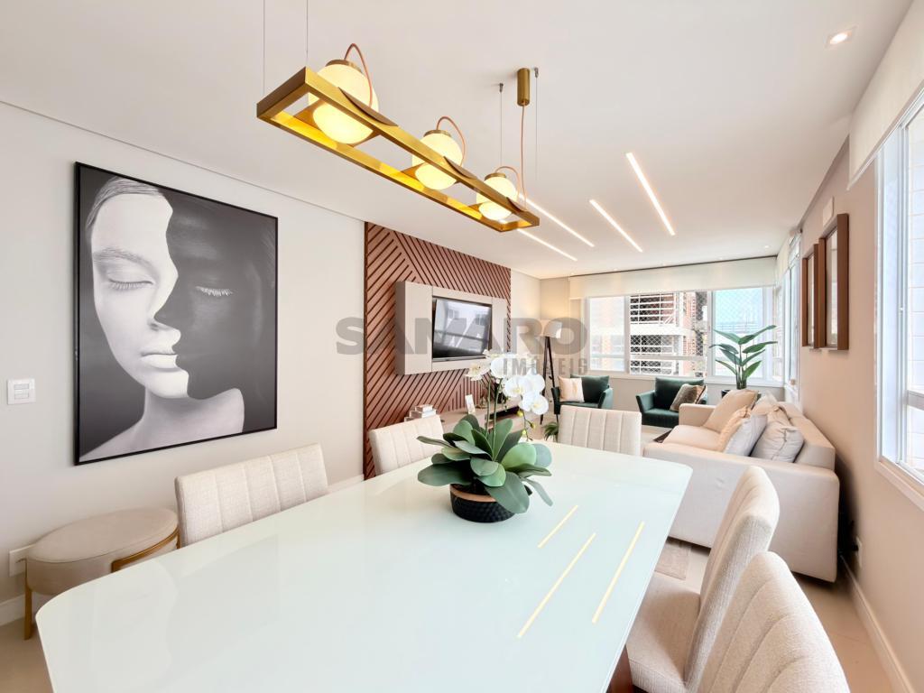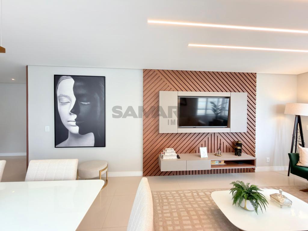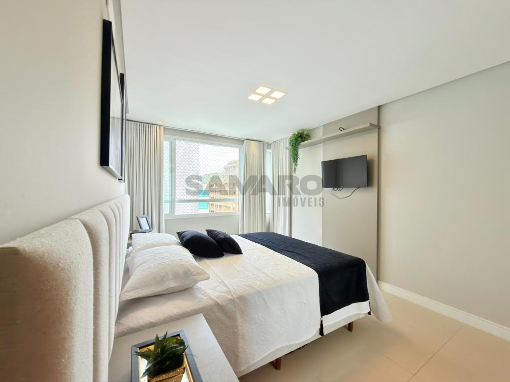 Apartamento composto por três dormitórios, sendo um suíte, banheiro social, living amplo em dois ambientes com vista para o mar, cozinha estilo americana, churrasqueira, área de lavanderia separada, uma vaga dupla de garagem, ambientes climatizados, espera para água quente, medidores de água e gás individuais.