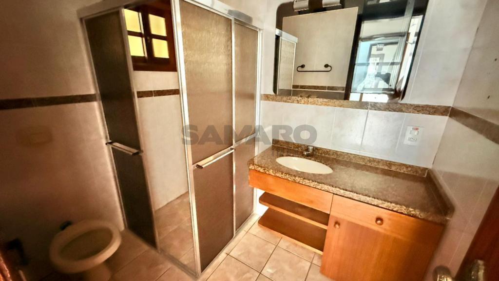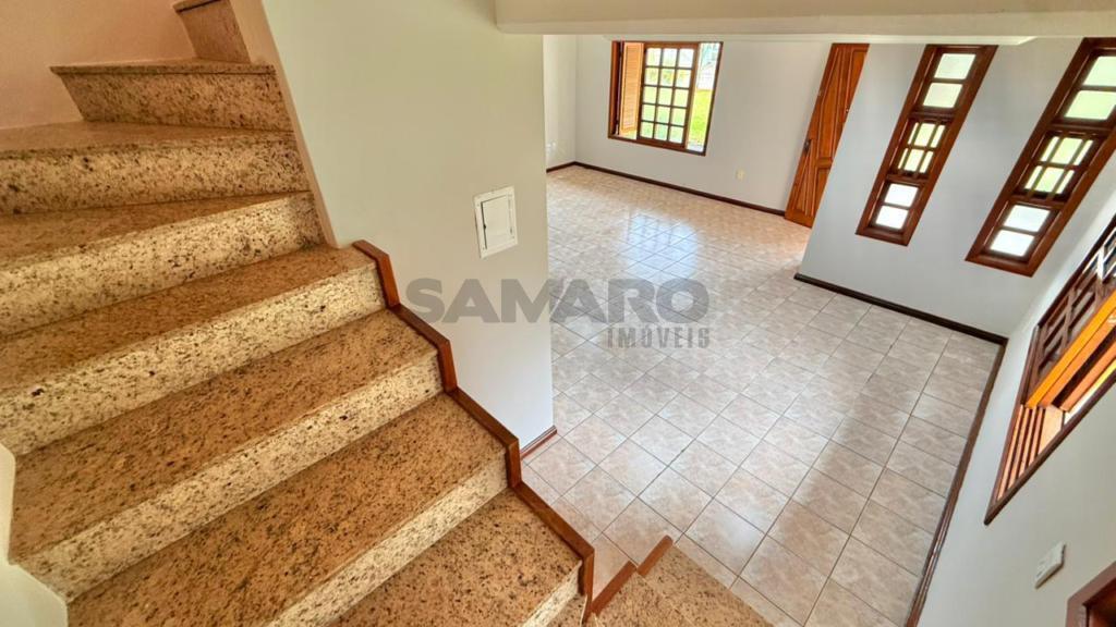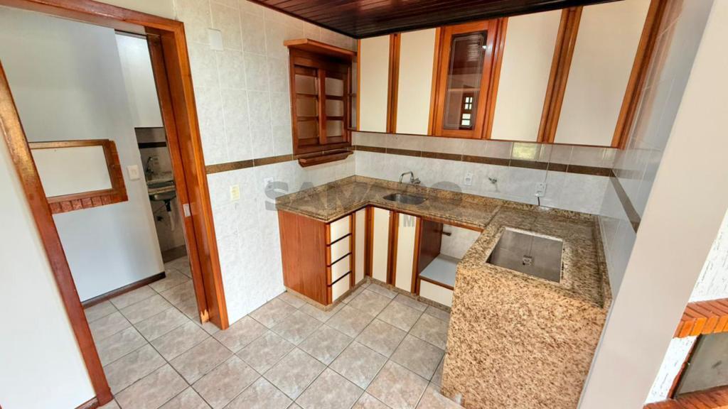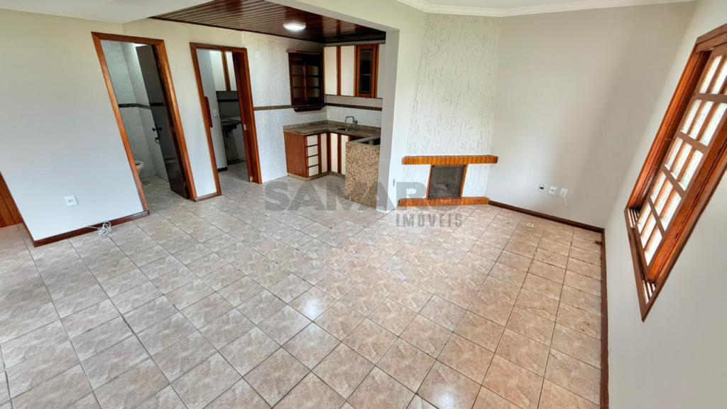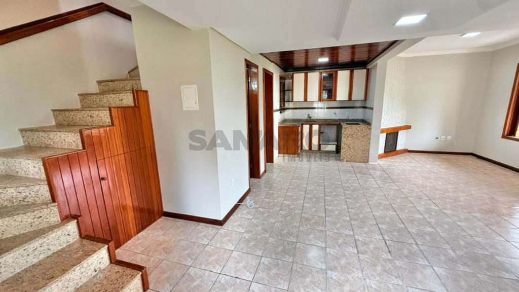 Sobrado com 03 dormitórios, suíte, cozinha estilo americana, lavabo, living em dois ambientes com lareira, banheiro social, lavanderia, churrasqueira, duas vagas de garagem.
