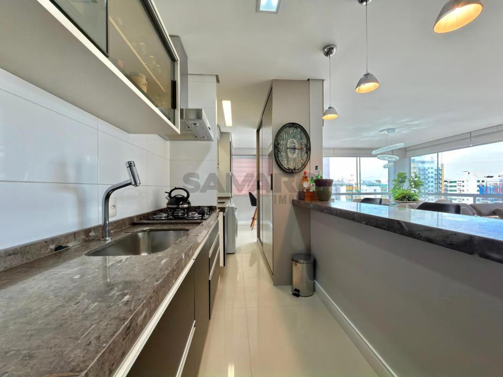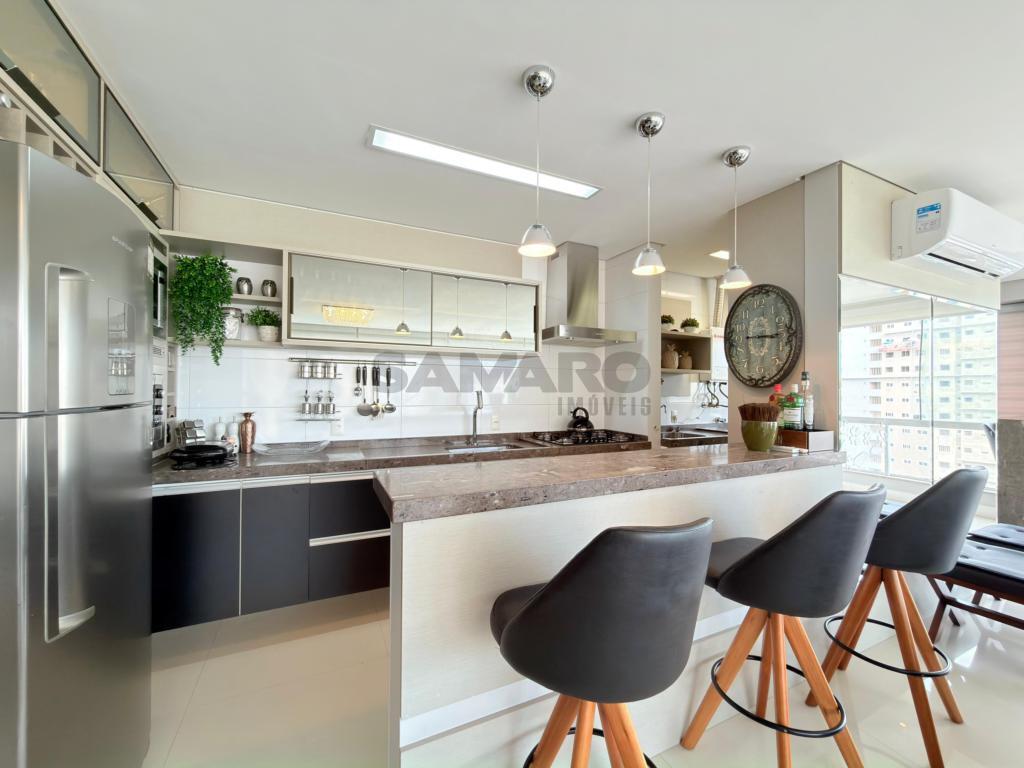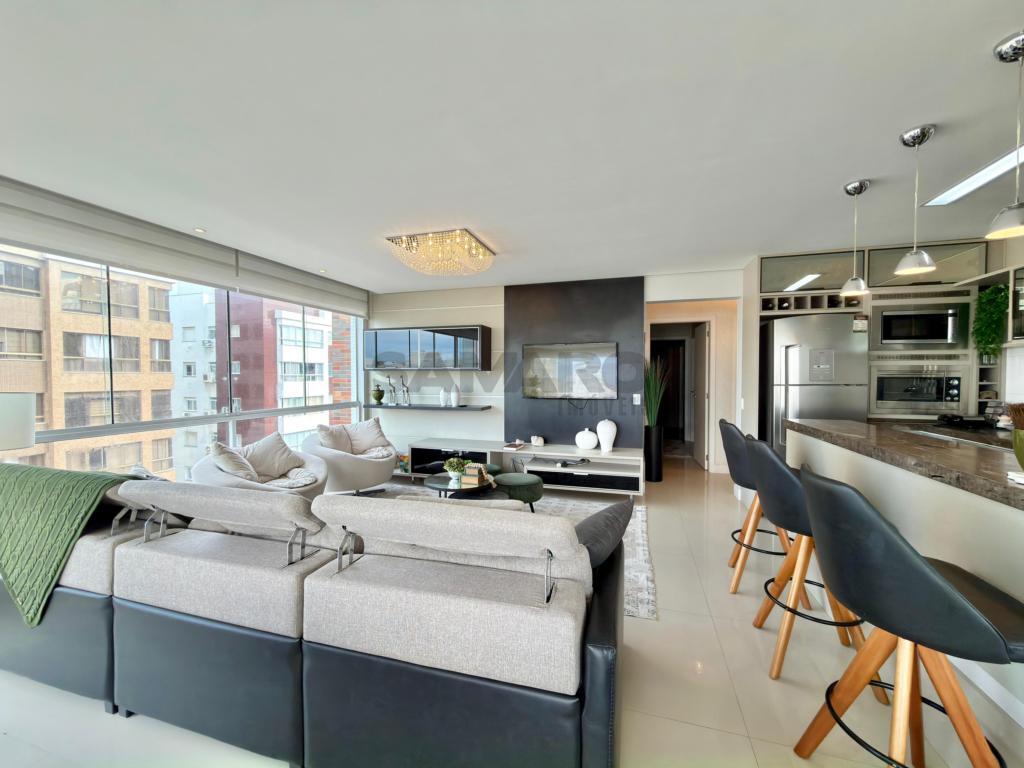 Apartamento de frente para a praça, com 3 quartos sendo um suíte, banheiro social, lavabo, living em dois ambientes integrados, espaço gourmet com churrasqueira, sacada integrada, cozinha estilo americana, área de lavanderia, duas vagas de garagem, espera para ar condicionado split e água quente, gás central, medidores de água e gás individuais, orientação solar leste/norte (sol da manhã).