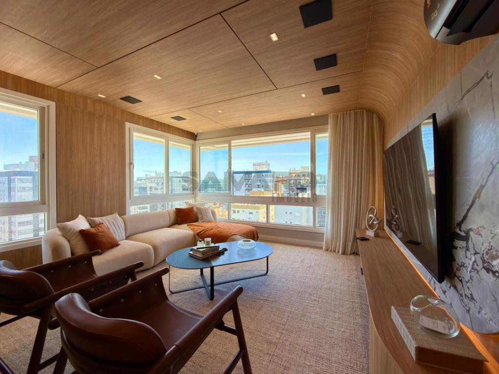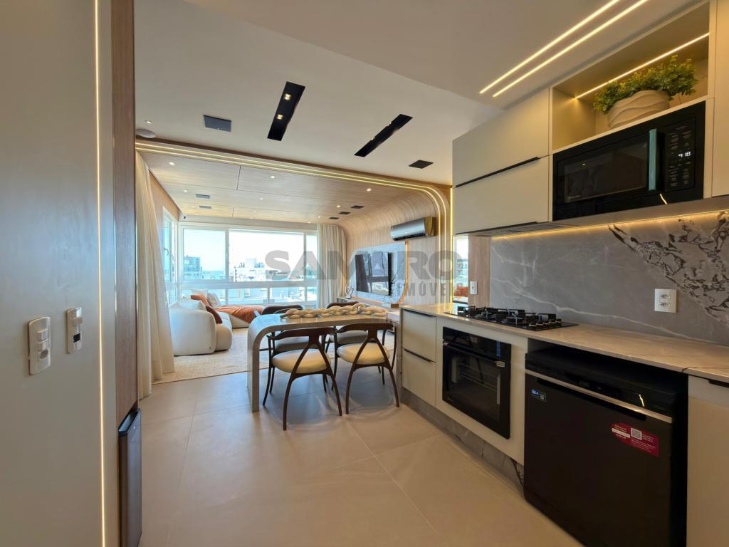 Apartamento com 03 dormitórios amplos, suíte, banheiro social, lavabo, living em dois ambientes, cozinha estilo americana, área de serviço, churrasqueira, vaga de garagem.