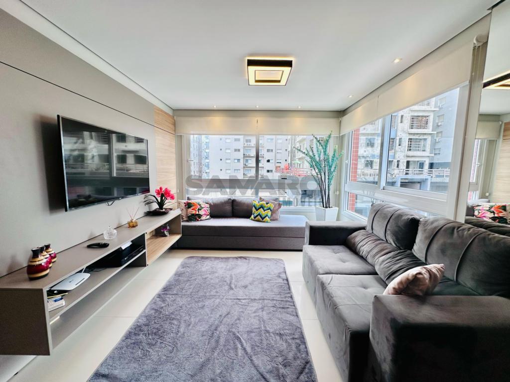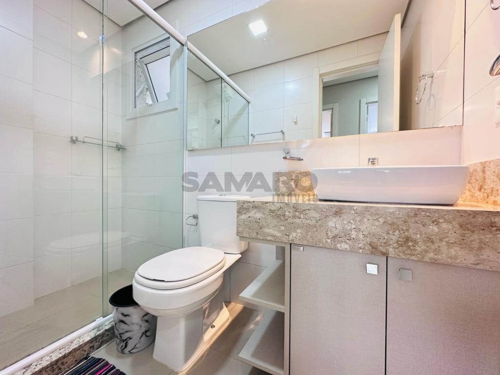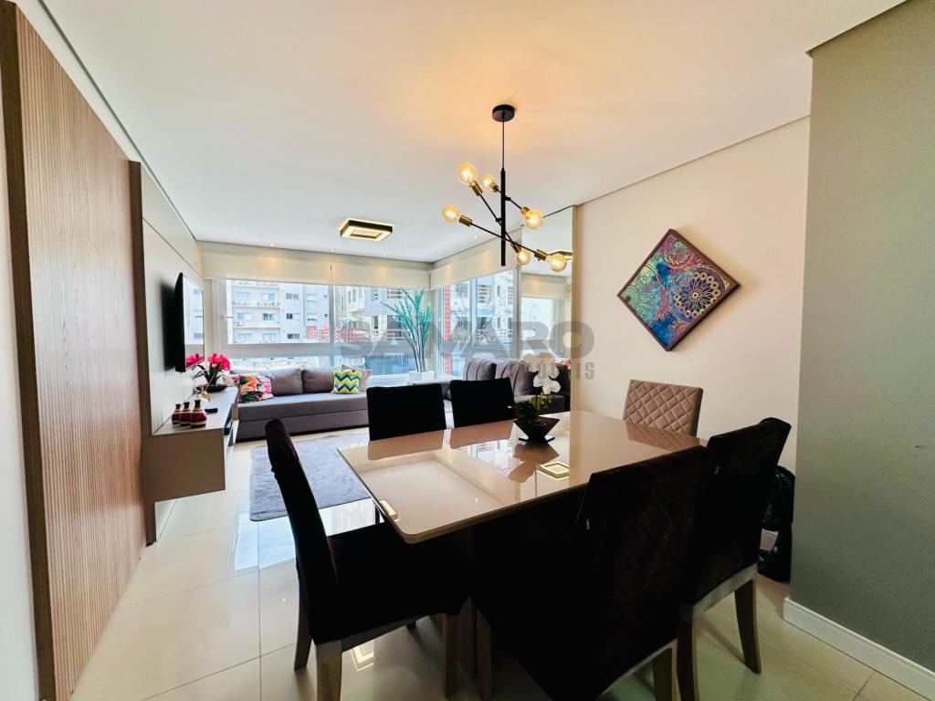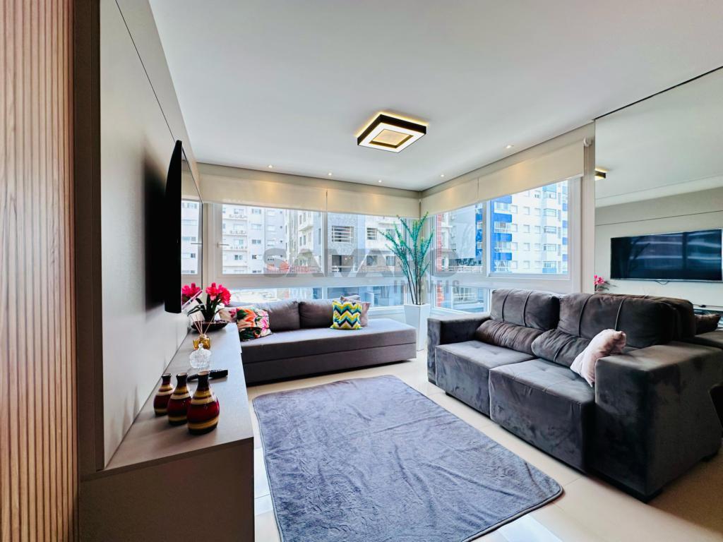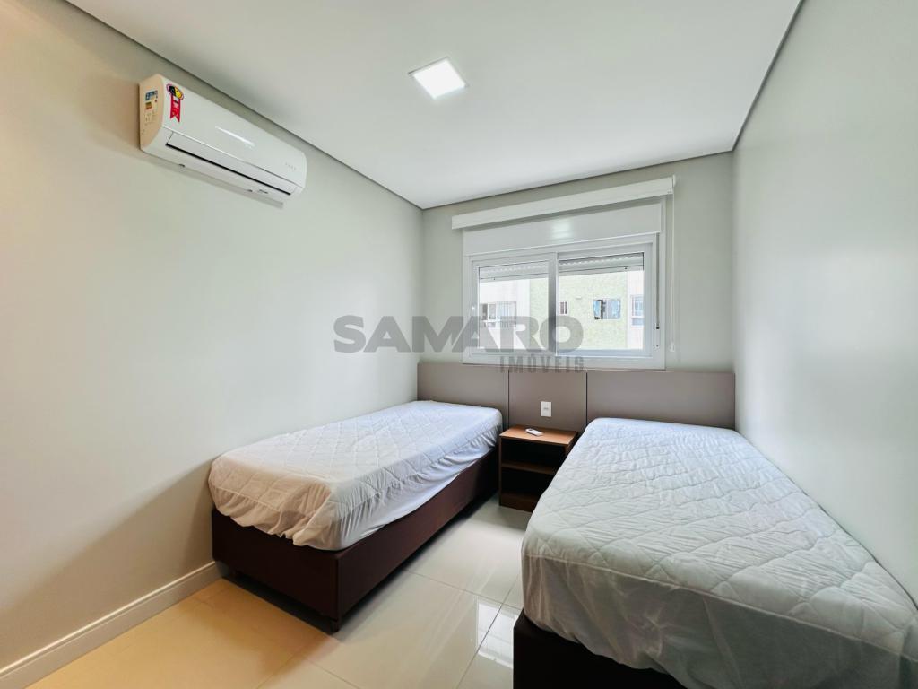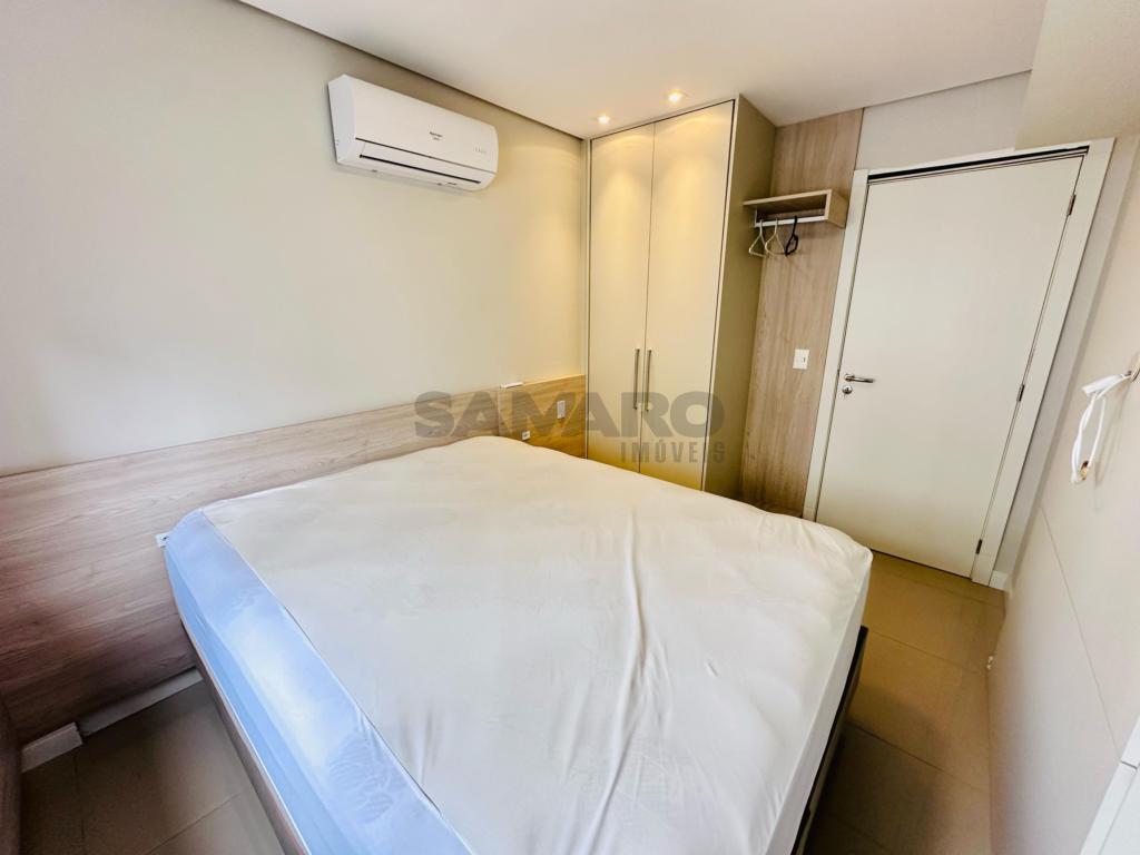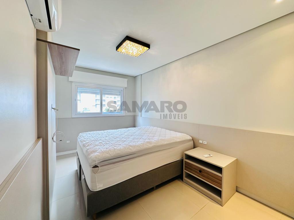 02 dormitorios, 01 suíte, banheiro social, living estar, jantar, cozinha estilo Americana com churrasqueira, lavanderia separada, mobiliado e decorado, box de garagem duplo.