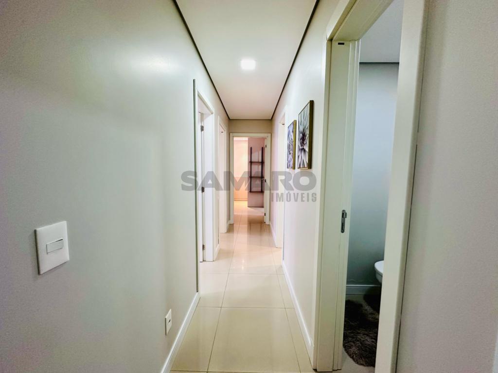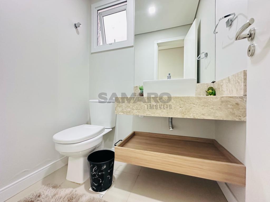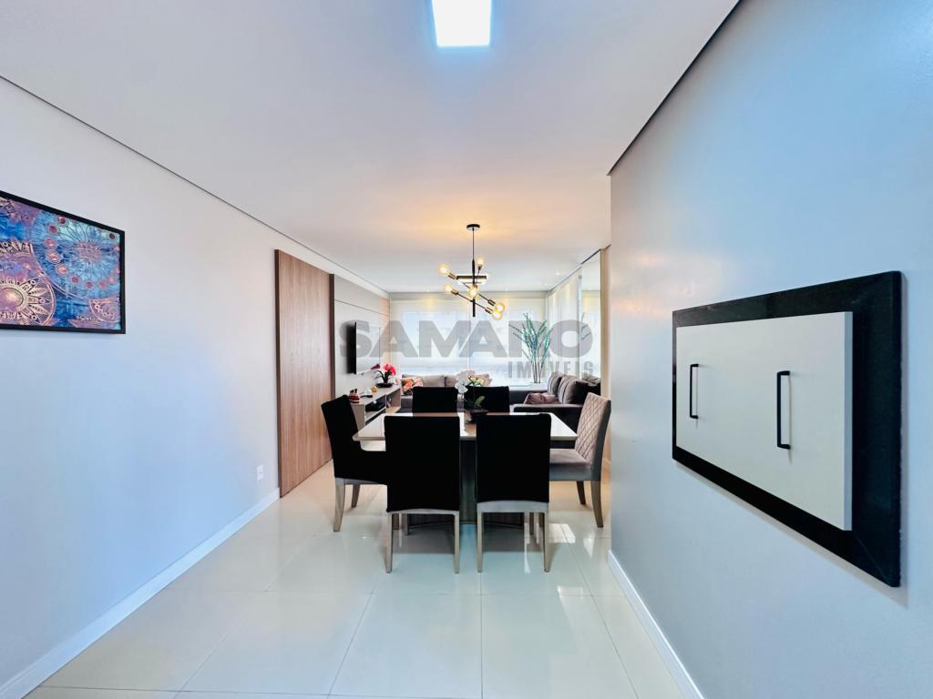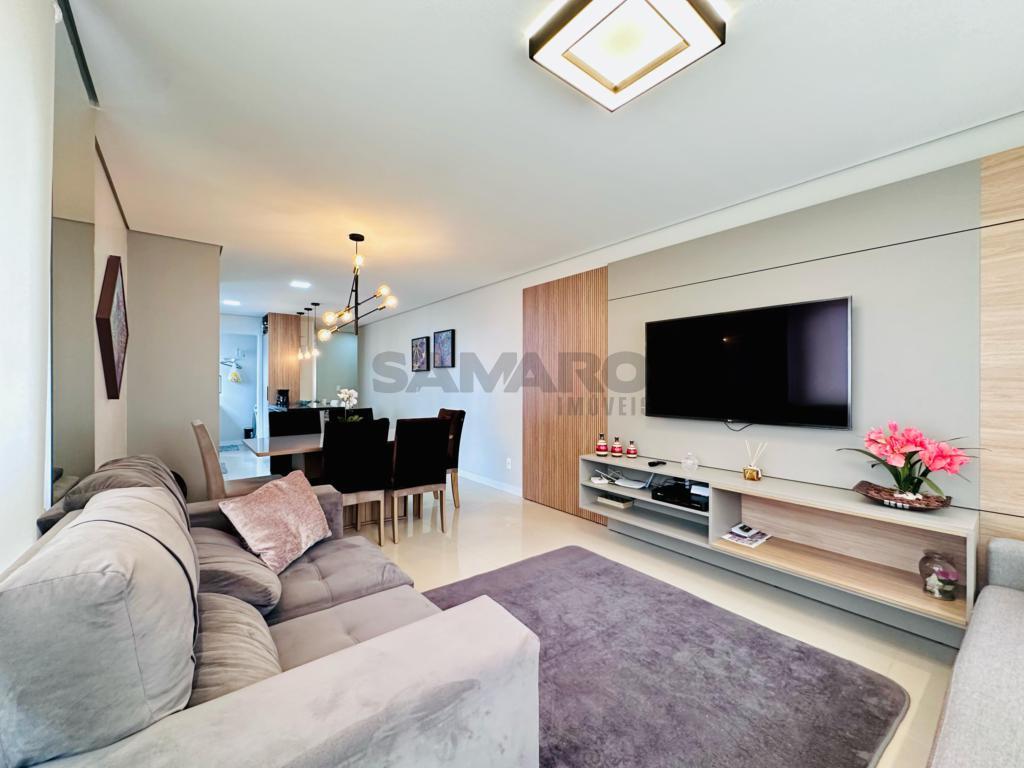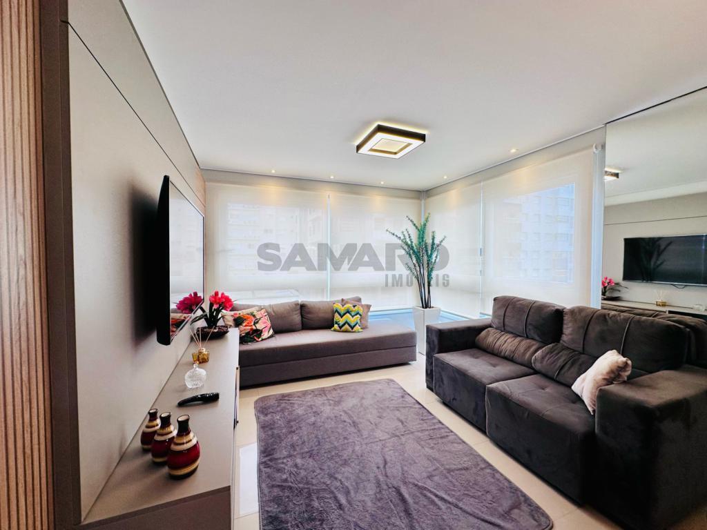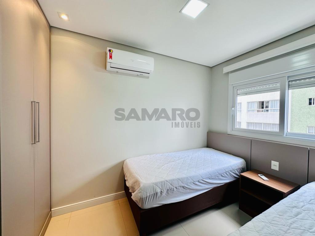 02 dormitorios, 01 suíte, banheiro social, living estar, jantar, cozinha estilo Americana com churrasqueira, lavanderia separada, mobiliado e decorado, box de garagem duplo.