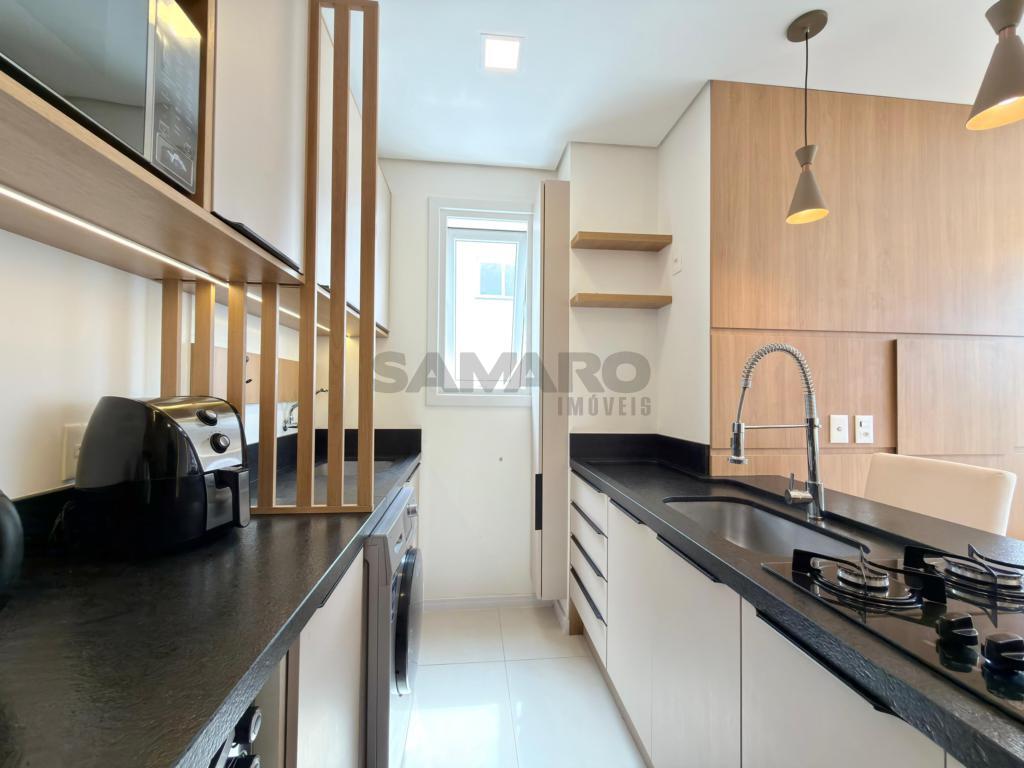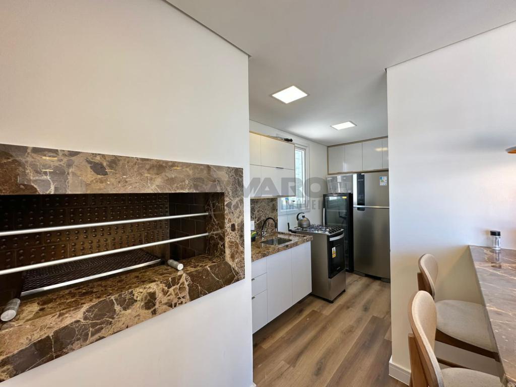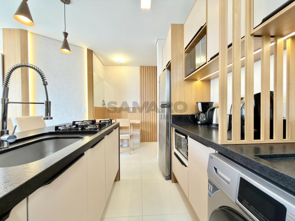 03 dormitorios, 01 suíte, banheiro social, lavabo, living estar, jantar, cozinha estilo Americana com churrasqueira e lavanderia integrada, mobiliado e decorado, uma vaga de garagem.