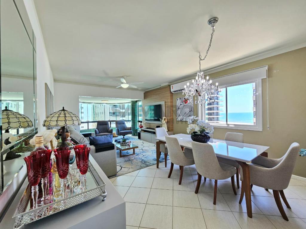 Sacadão de frente com churrasqueira e vista eterna mar e avenida, amplo living dois ambientes, cozinha, lavanderia separada, totalmente mobiliado e decorado, apartamento 3 amplos dormitórios, suíte, banho social, sol da manhã, garagem e muito bem ventilado.