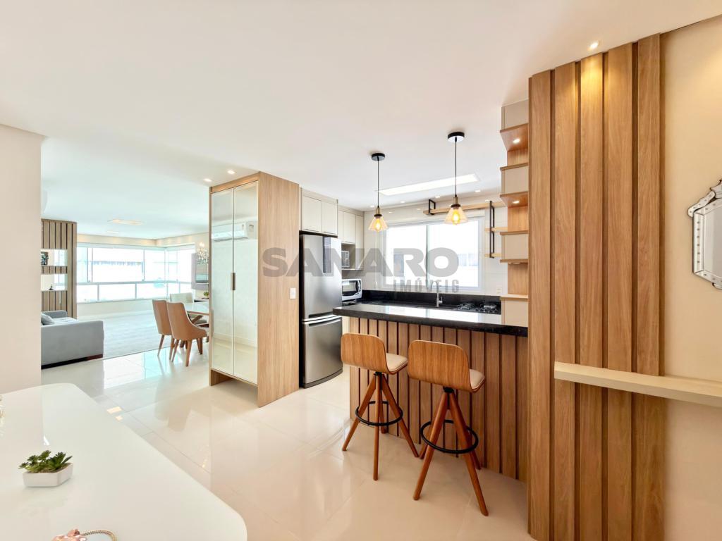 Composto por três dormitórios sendo um suíte, lavabo, banheiro social, sacada integrada ao amplo living, área de lavanderia separada, mobiliado, Orientação solar Leste, Sul e com uma vaga de garagem e depósito.