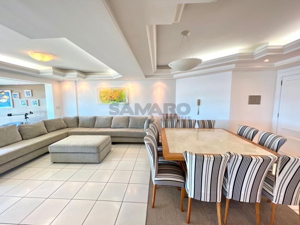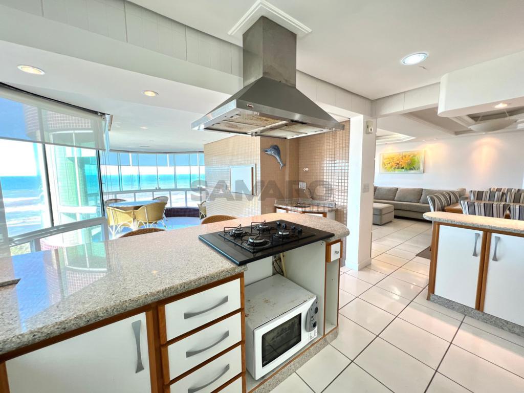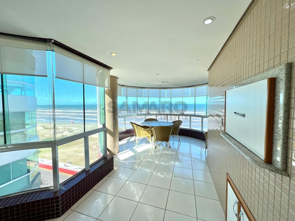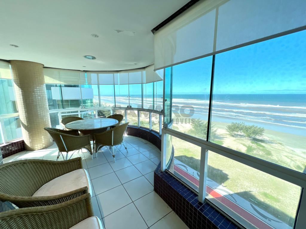 Amplo apartamento 04 dormitórios, sendo 2 suites, banho social, lavabo, sacada de frente para o mar com churrasqueira, amplo living dois ambientes, totalmente climatizado, cozinha, lavanderia, totalmente mobiliado, duas vagas de garagem, área total de 224m².