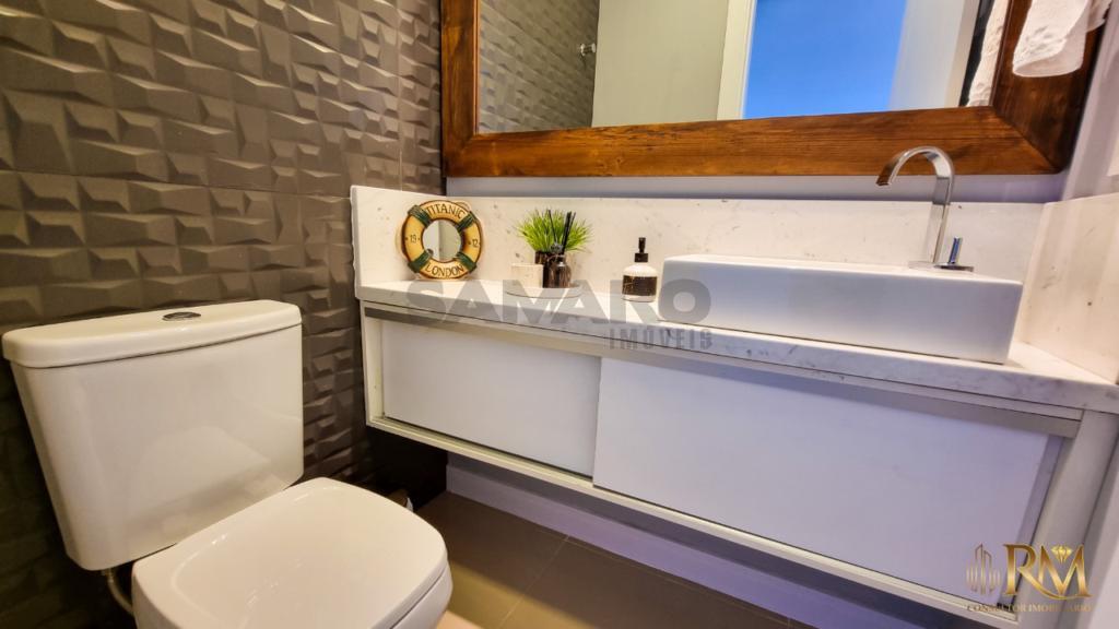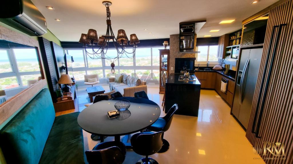 Sacada de frente com vista eterna para o mar, mobiliado e decorado, apartamento de 4 dormitórios sendo todos suítes + lavabo, sala de estar e jantar integrado a cozinha americana, churrasqueira, duas garagens.