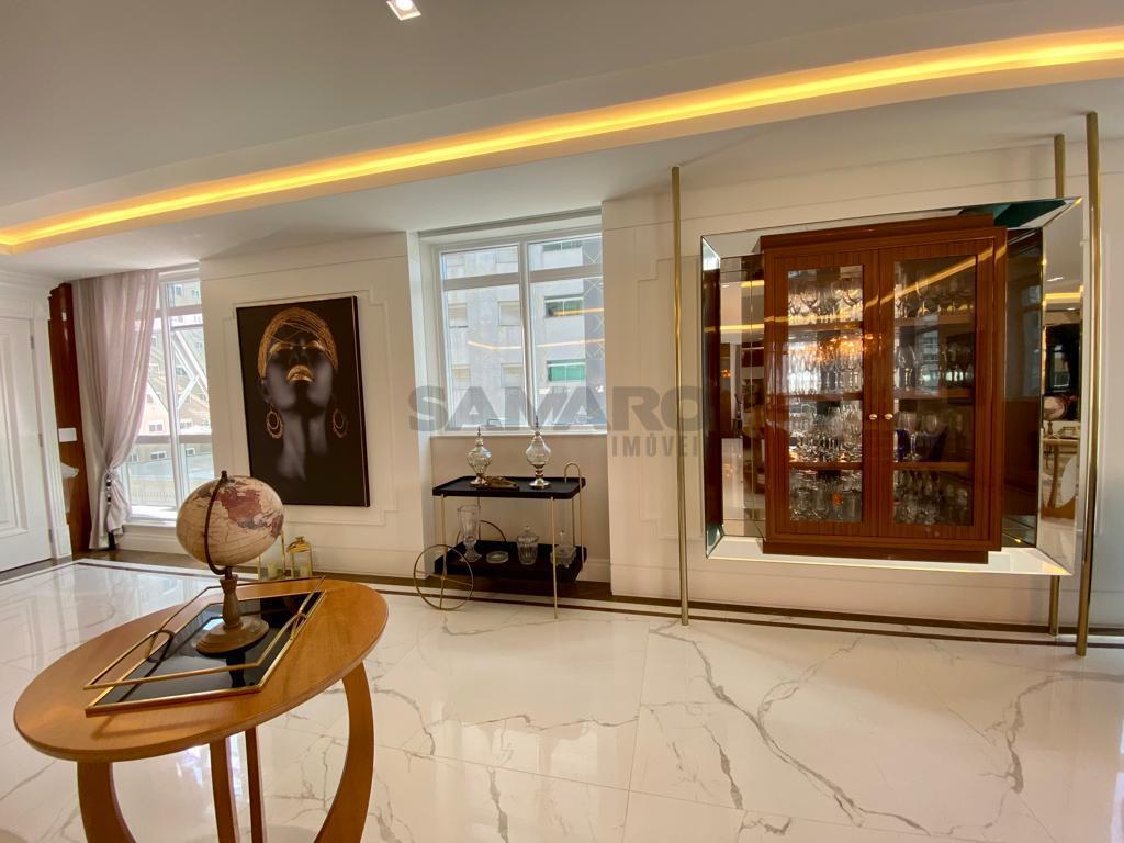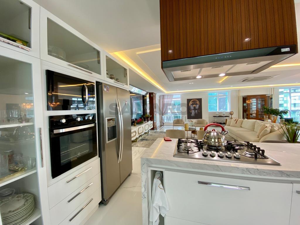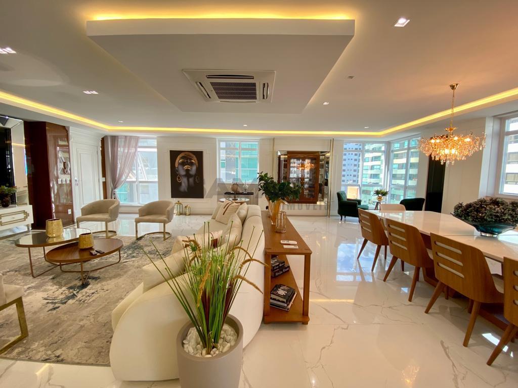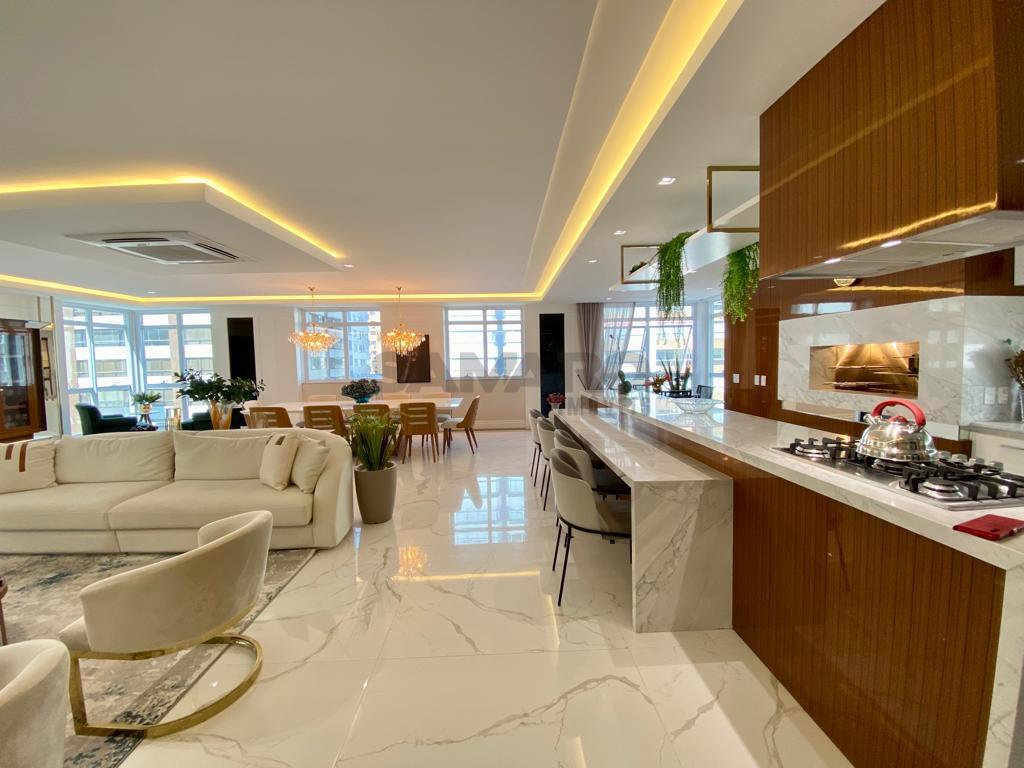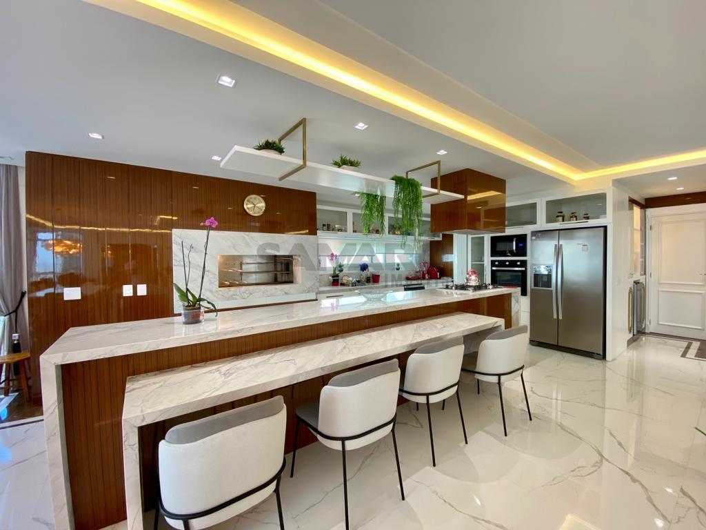 Um por andar, 4 suites, lavabo social e lavabo serviço, sacada de frente integrado ao amplo living com 105m², cozinha americana, lavanderia, finamente mobiliado e decorado, orientação solar Leste/Sul/Norte/Oeste com duas vagas de garagens.