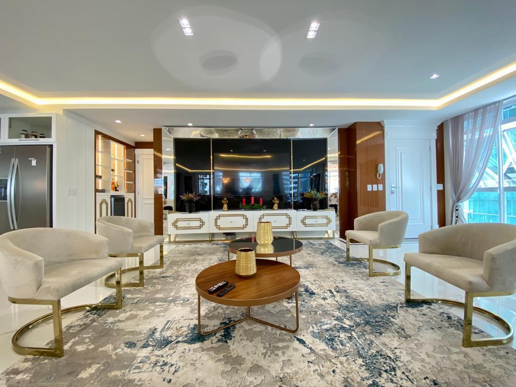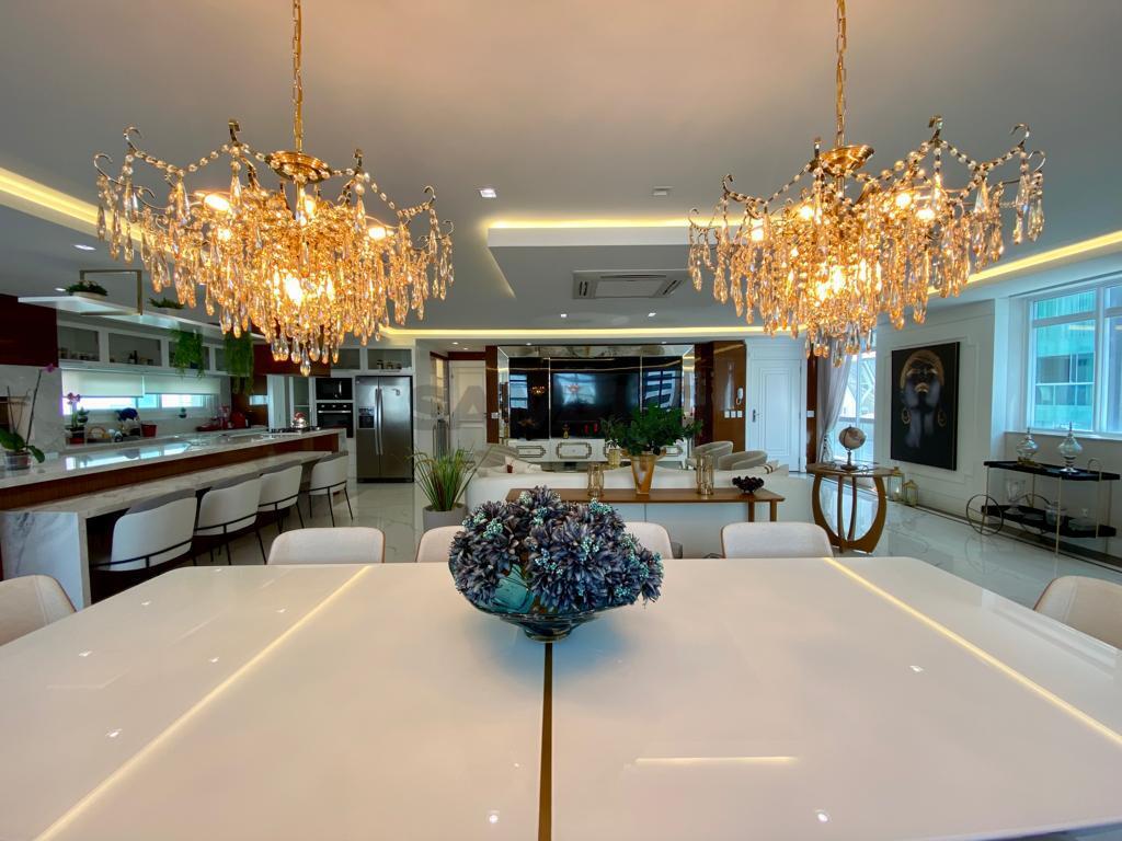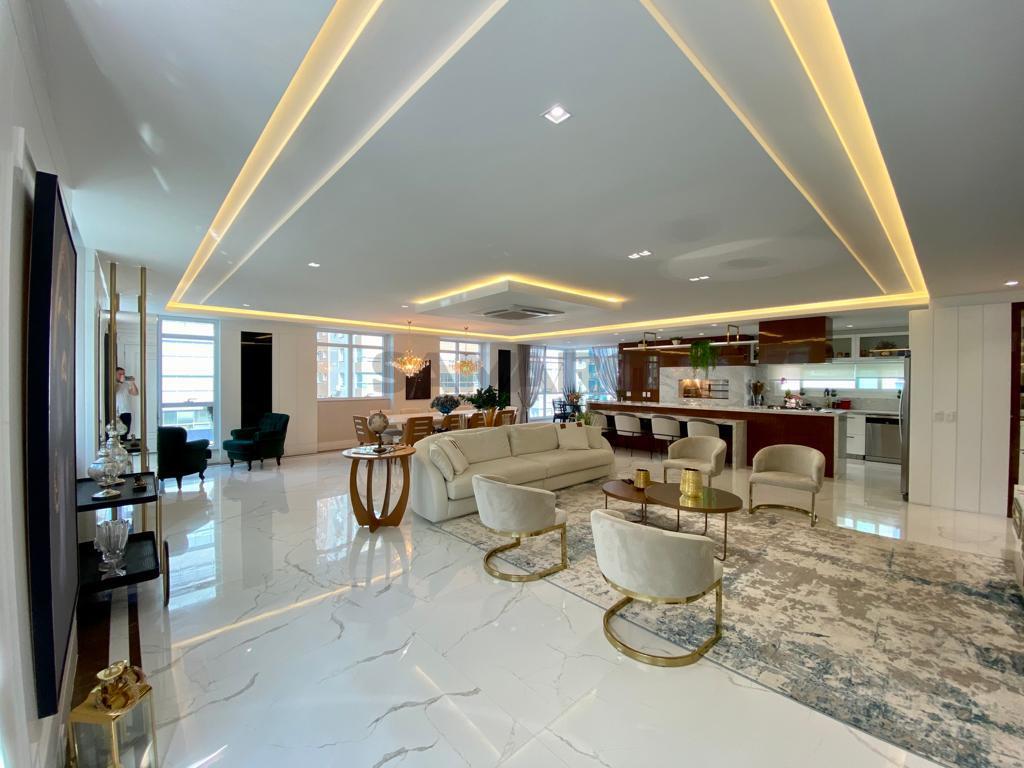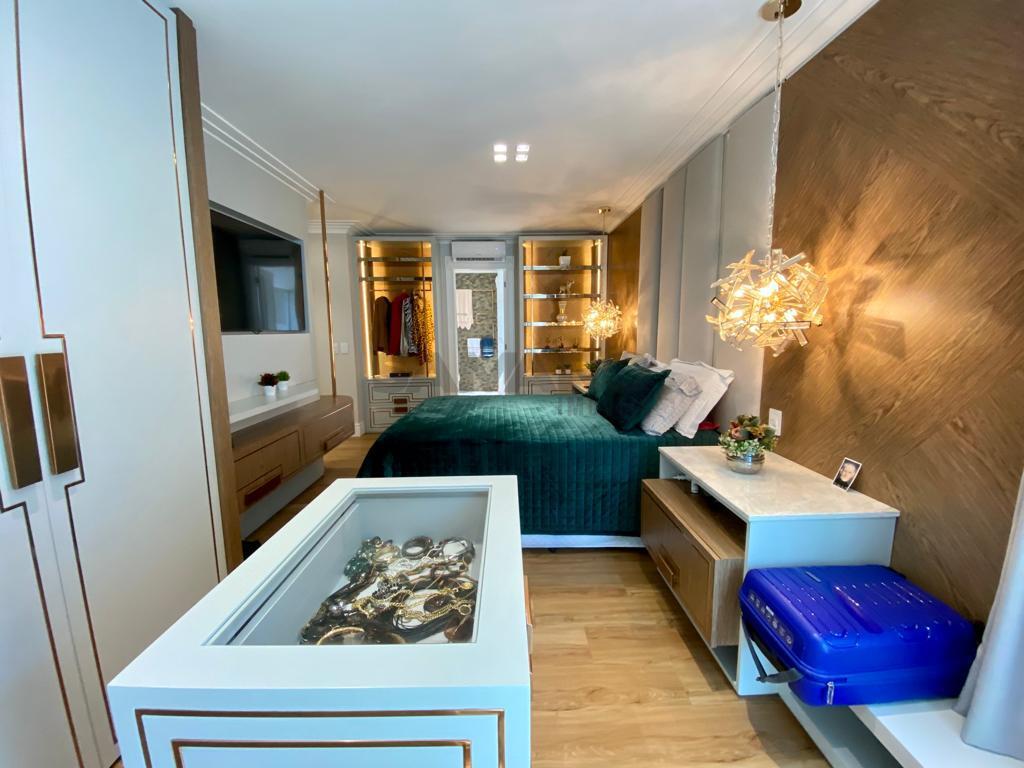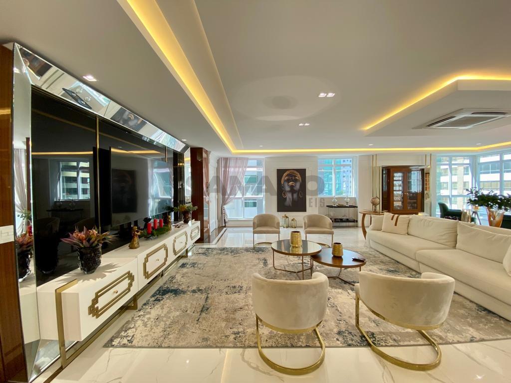 Um por andar, 4 suites, lavabo social e lavabo serviço, sacada de frente integrado ao amplo living com 105m², cozinha americana, lavanderia, finamente mobiliado e decorado, orientação solar Leste/Sul/Norte/Oeste com duas vagas de garagens.
