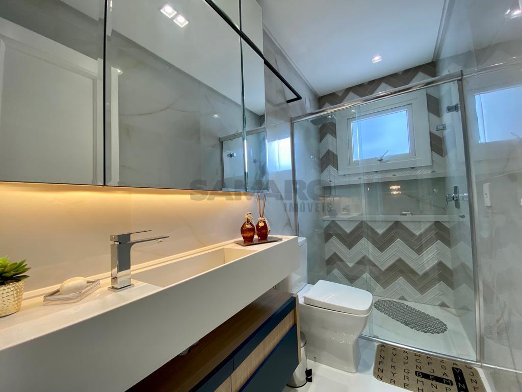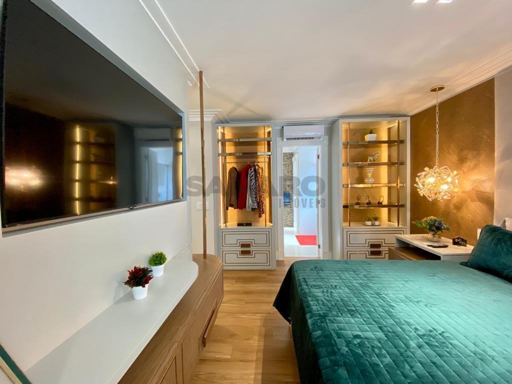 Localizado no bairro navegantes, avenida Ubirajara, duas do mar, alto padrão construtico, acabamento neoclássico, hall de entrada com pé direito duplo decorado em detalles madeira nobre entalhada e dois elevadores, piscina térmica com detalhes arquitetônicos e borda em vidro equipada com sistema de desumidificação, sauna úmida, salão de festas decorado com louças personalizadas em porcelana com filetes em ouro, fitness equipada climatizada e sonorizado, fachada revestida em pastilhas de porcelana, esquadrias em PVC, paredes duplas para melhor conforto acústico e térmico, vagas com pontos de abastecimento para carros elétricos, zelador permanente, portão e porteiro eletrônicos.