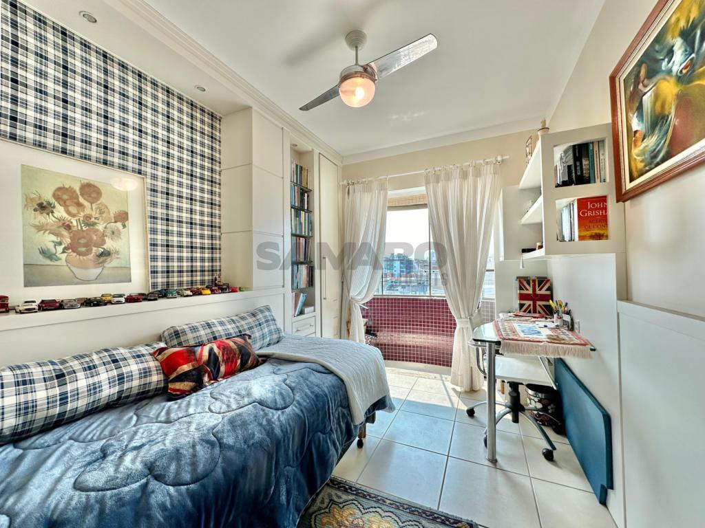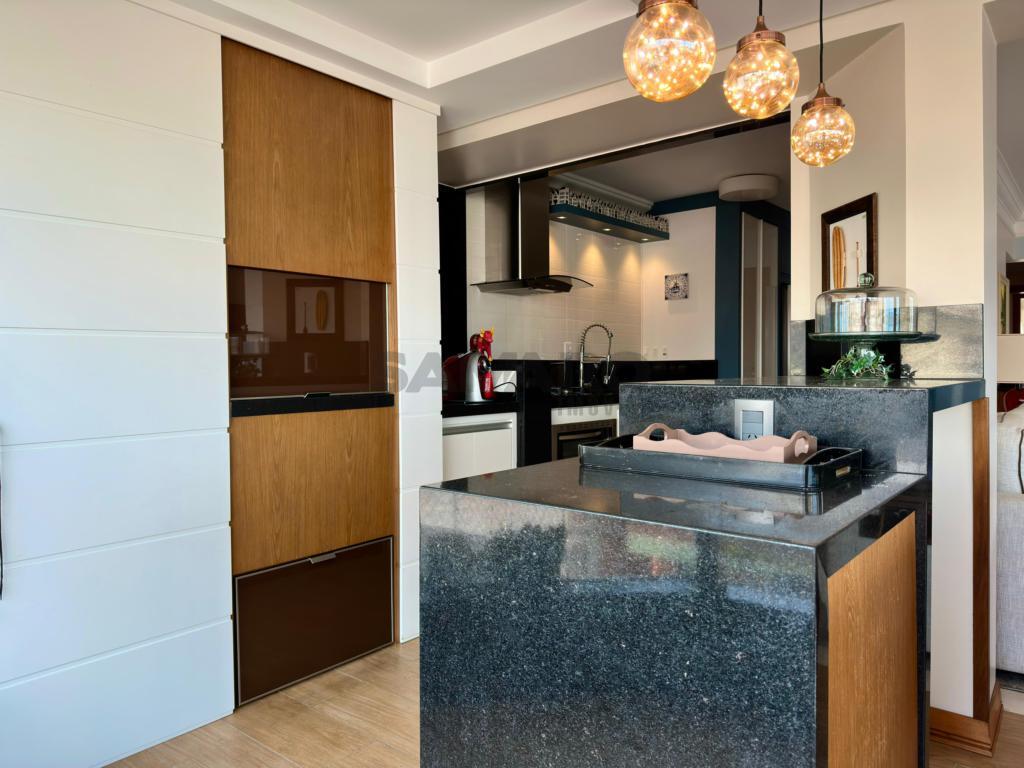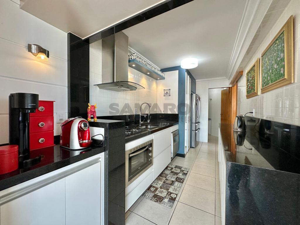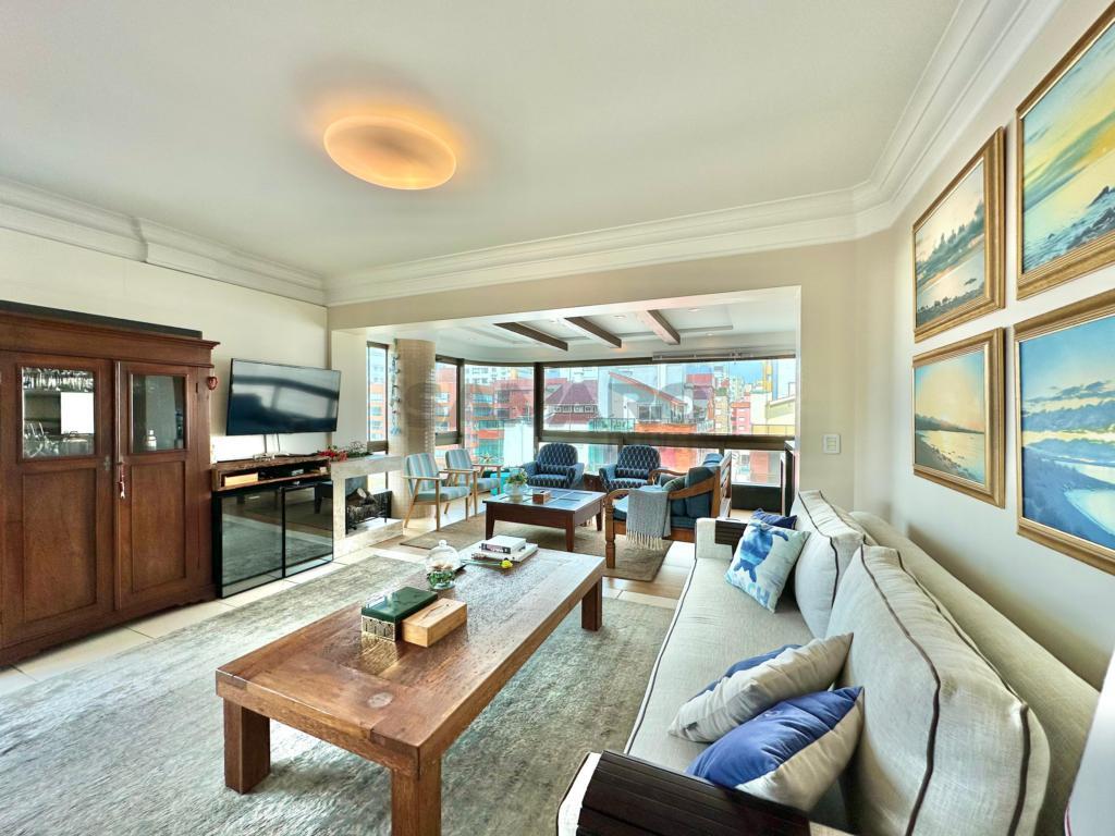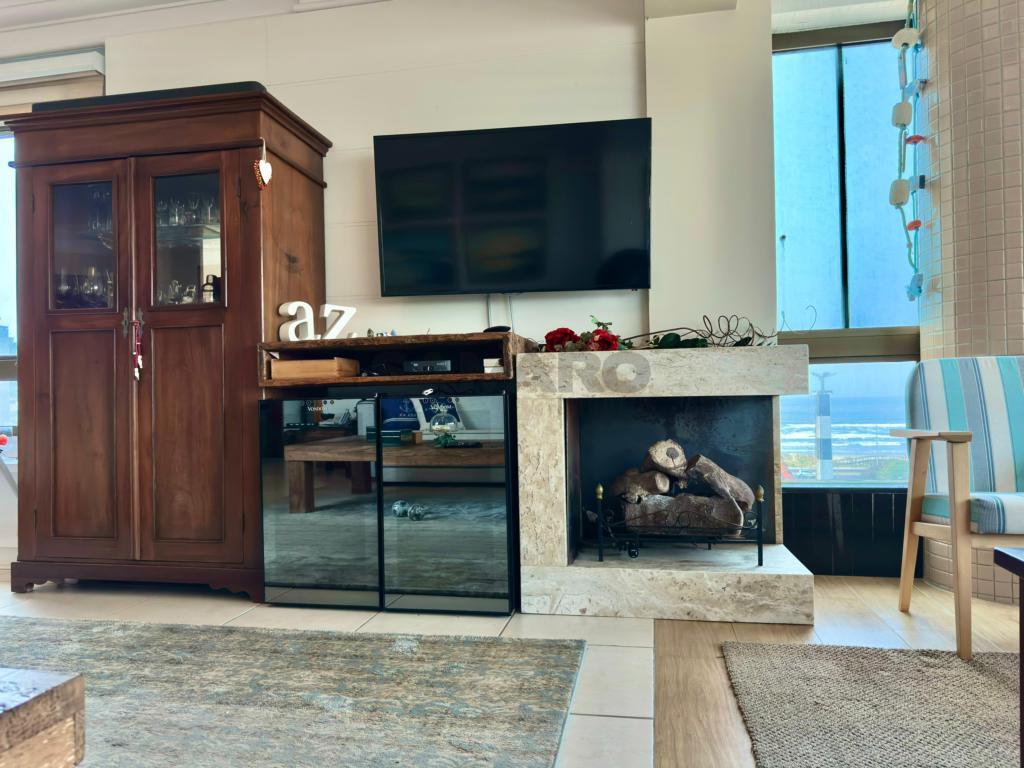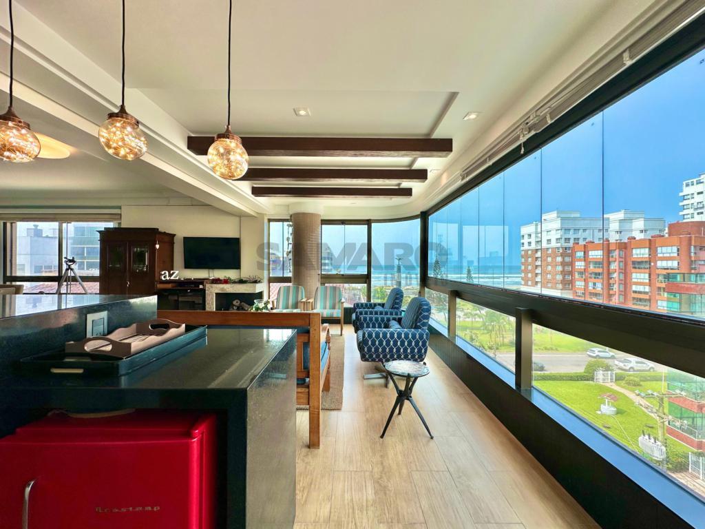 Apartamento com 4 dormitórios (sendo duas suites), banho social e lavabo, sala ampla em dois ambientes com vista para o mar, sacada de frente fechada com churrasqueira e espaço gourmet, mobiliado e decorado, cozinha separada com acesso á sacada de frente, dois box de estacionamento com um depósito, excelente ventilação natural e muito sol.