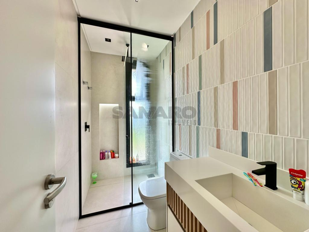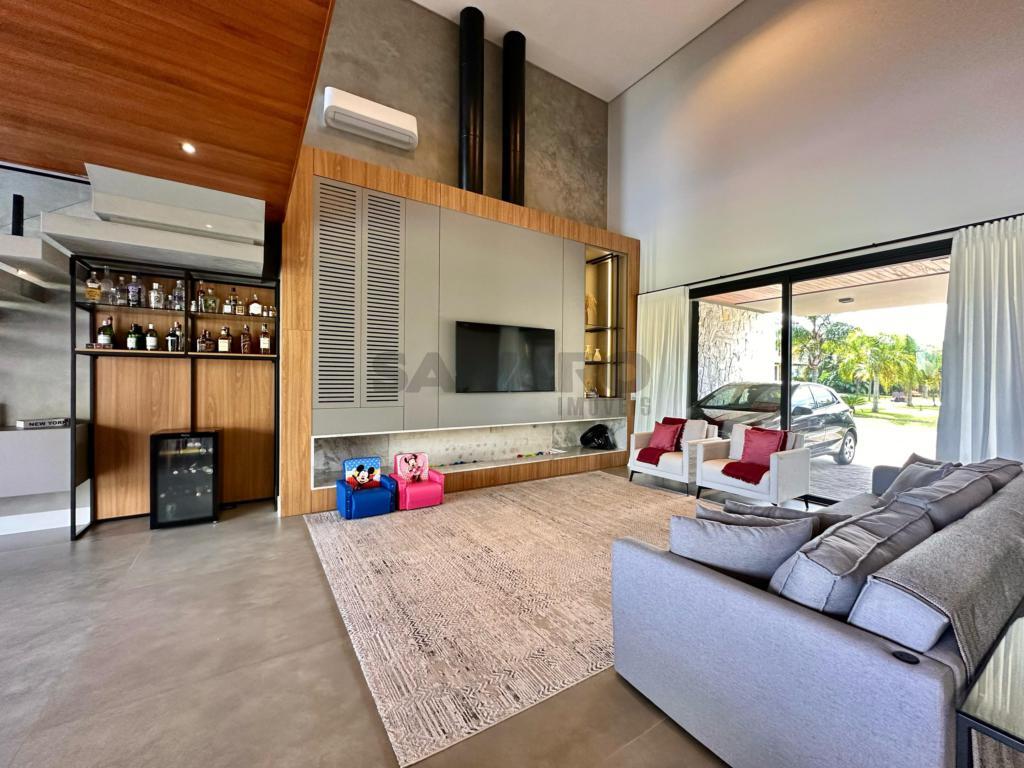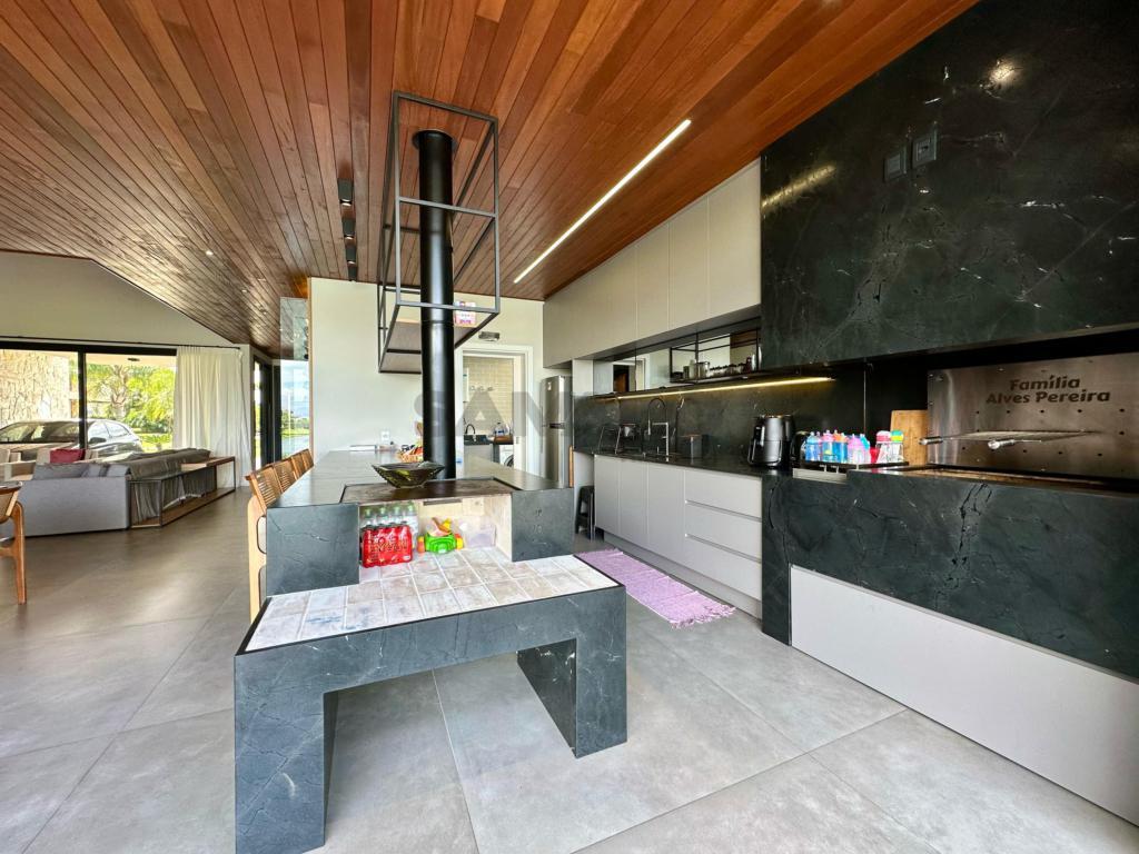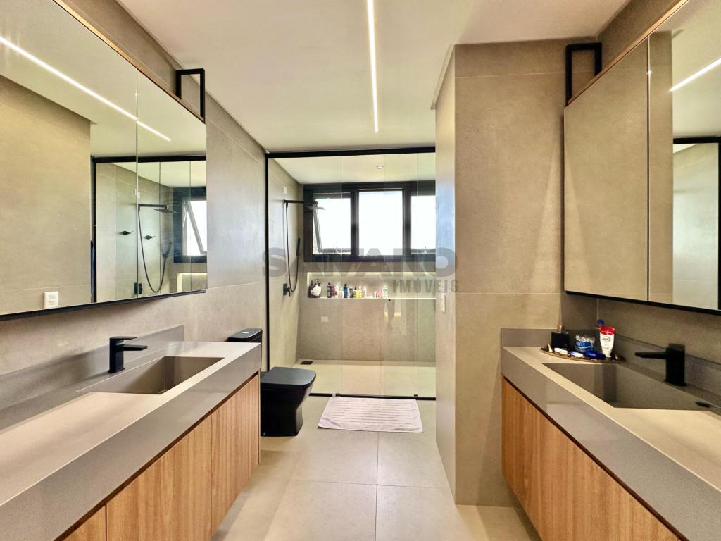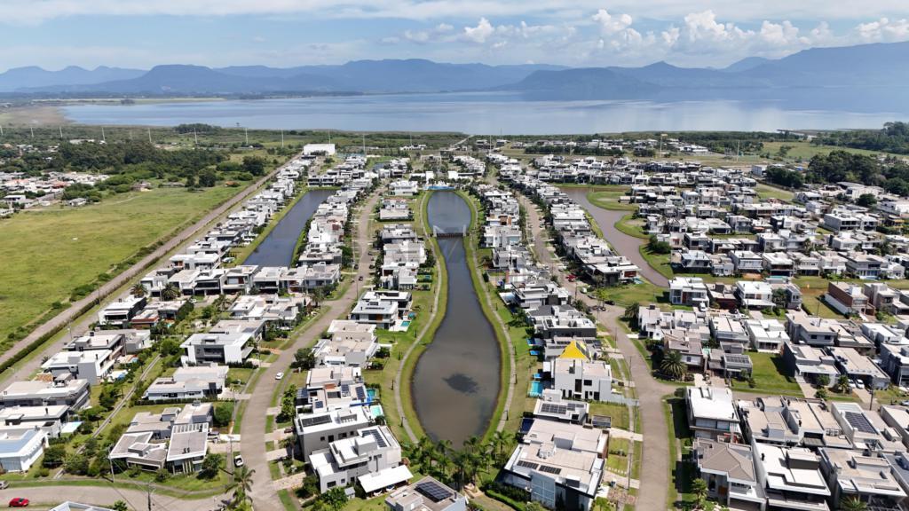 Sobrado com 335m² privativos,Beira lago ,04 suítes sendo uma Master térrea, lavabo interno e externopiscina,mobiliada e decorada com teto em madeira nobre,Pédireito duplo ,ambientes climatizados,esquadrilhas automatizadas em pvc preto,piscina aquecida 3x8 de concreto com iluminação, paisagismo e jardinagem, Segundo andar com piso vinílicoem todos os ambientes.vaga coberta para 02 carros