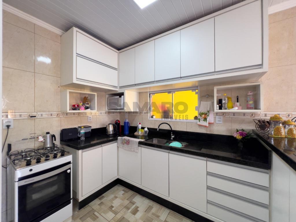 Casa de 3 dormitórios sendo um suíte, linving em dois ambientes, cozinha estiilo americana, banheiro social, área de lavanderia, espaço gourmet com churrasqueira e fogão a lenha, piscina, 2 vagas de garagem, uma edícula nos fundos (quarto, cozinha e banheiro), pátio na frente e nos fundos, terreno 12x25, posição solar oeste. Não perca essa oportunidade de negócio.