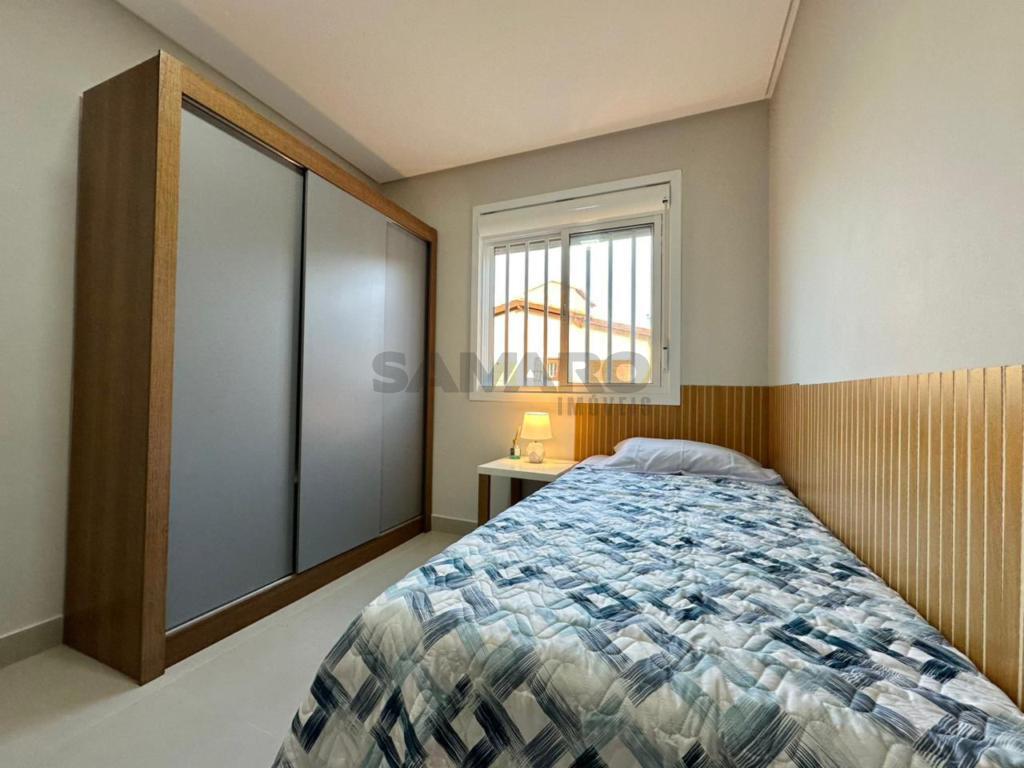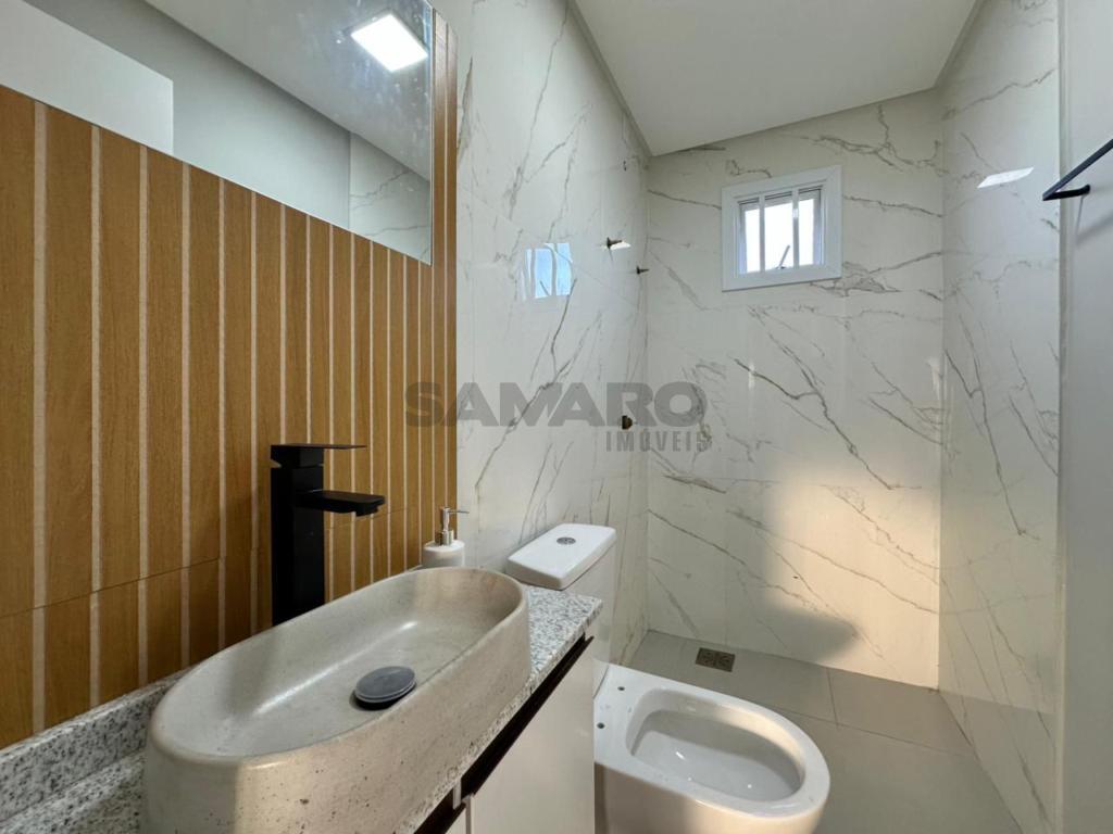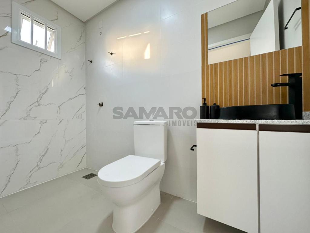 , em Porcelanato acetinado, espera para split, água quente, esquadrias externas em alumínio, pinternas brancas