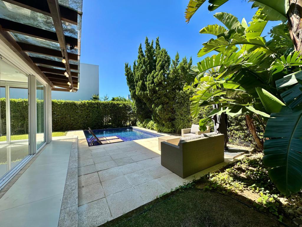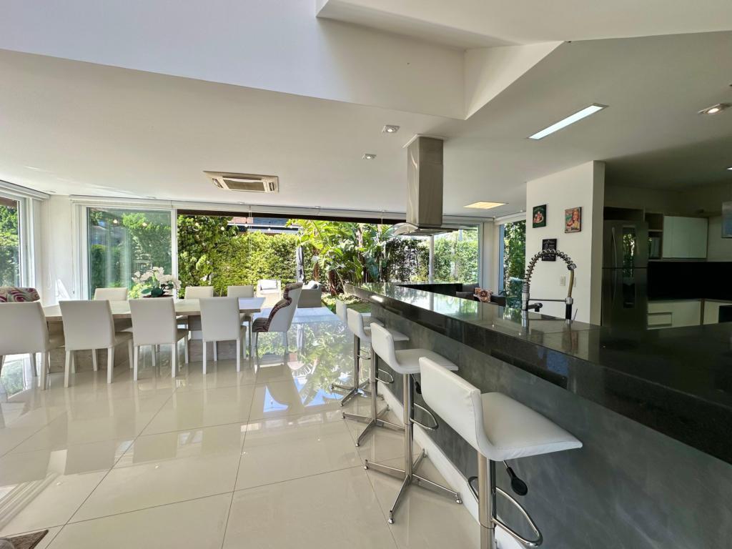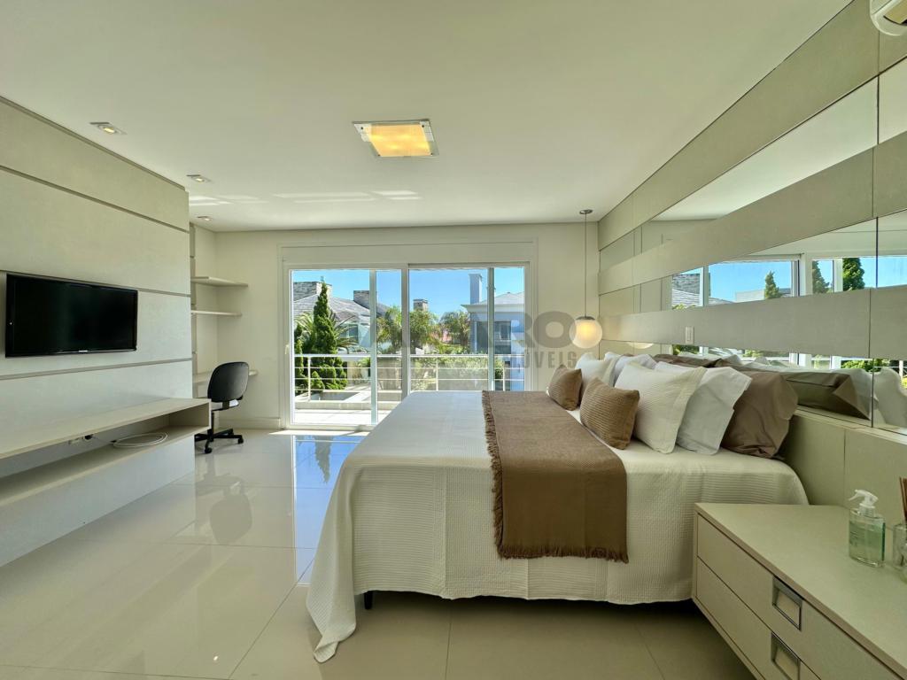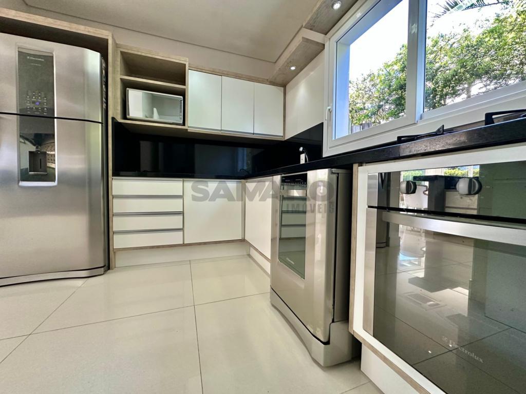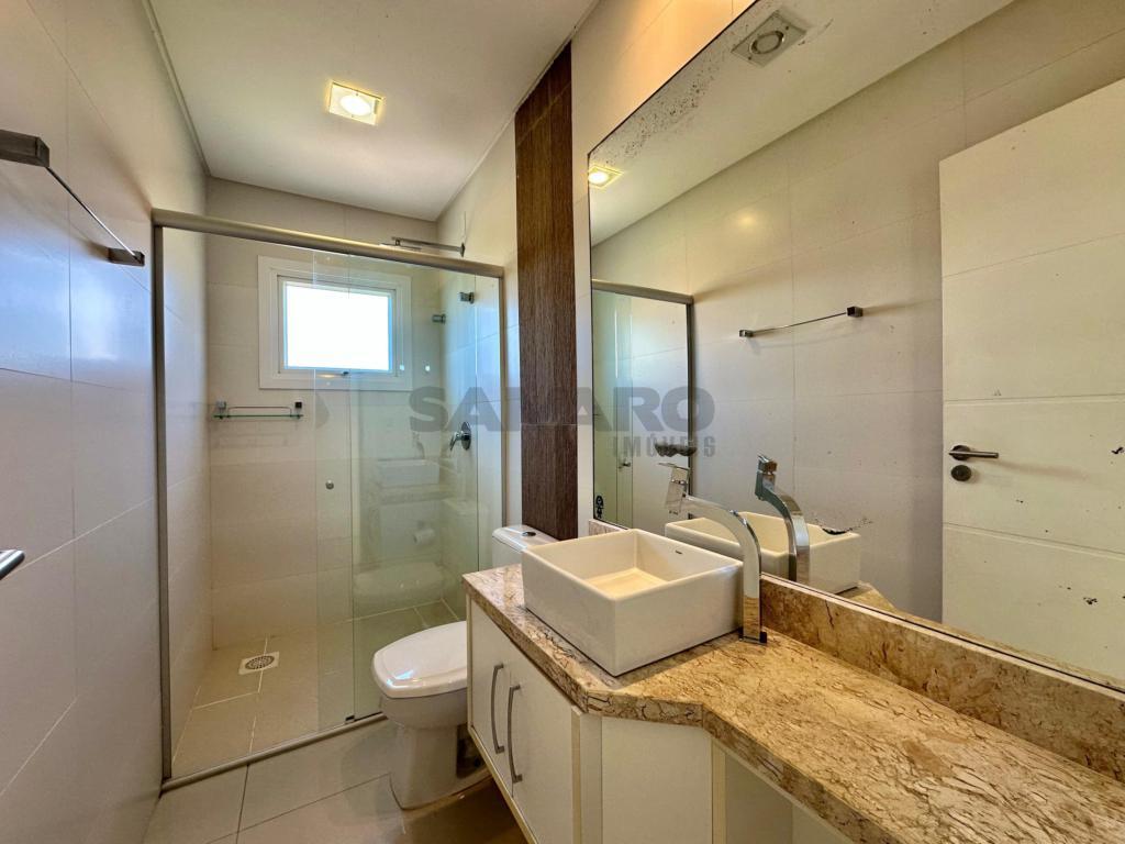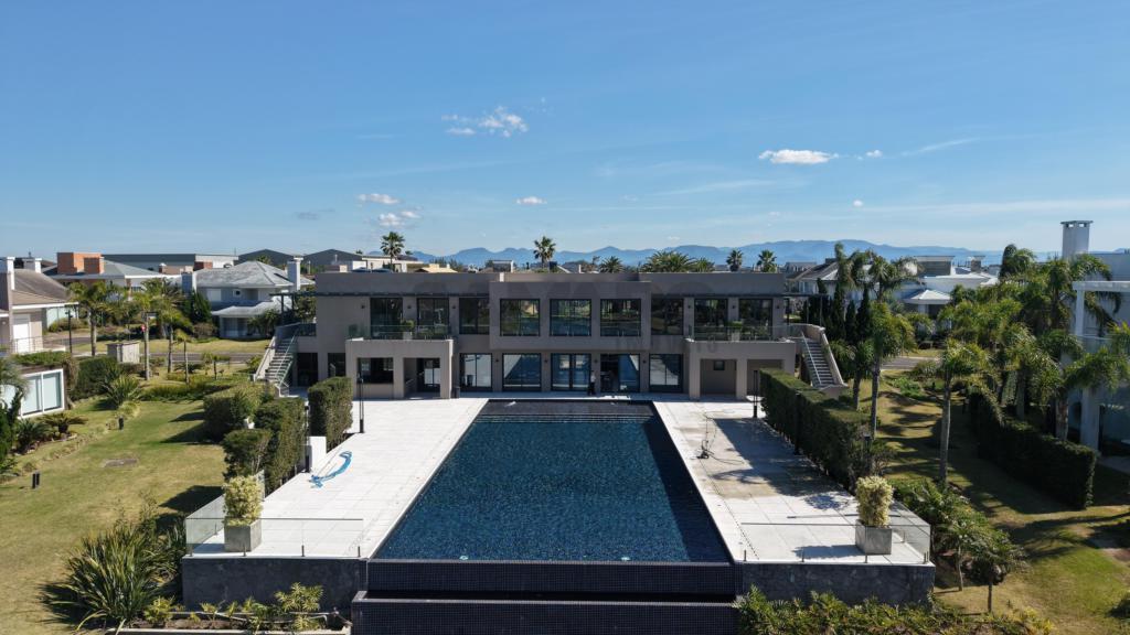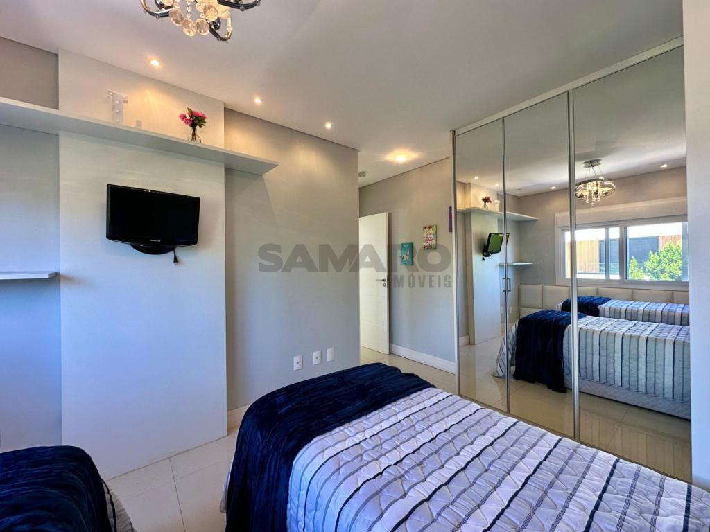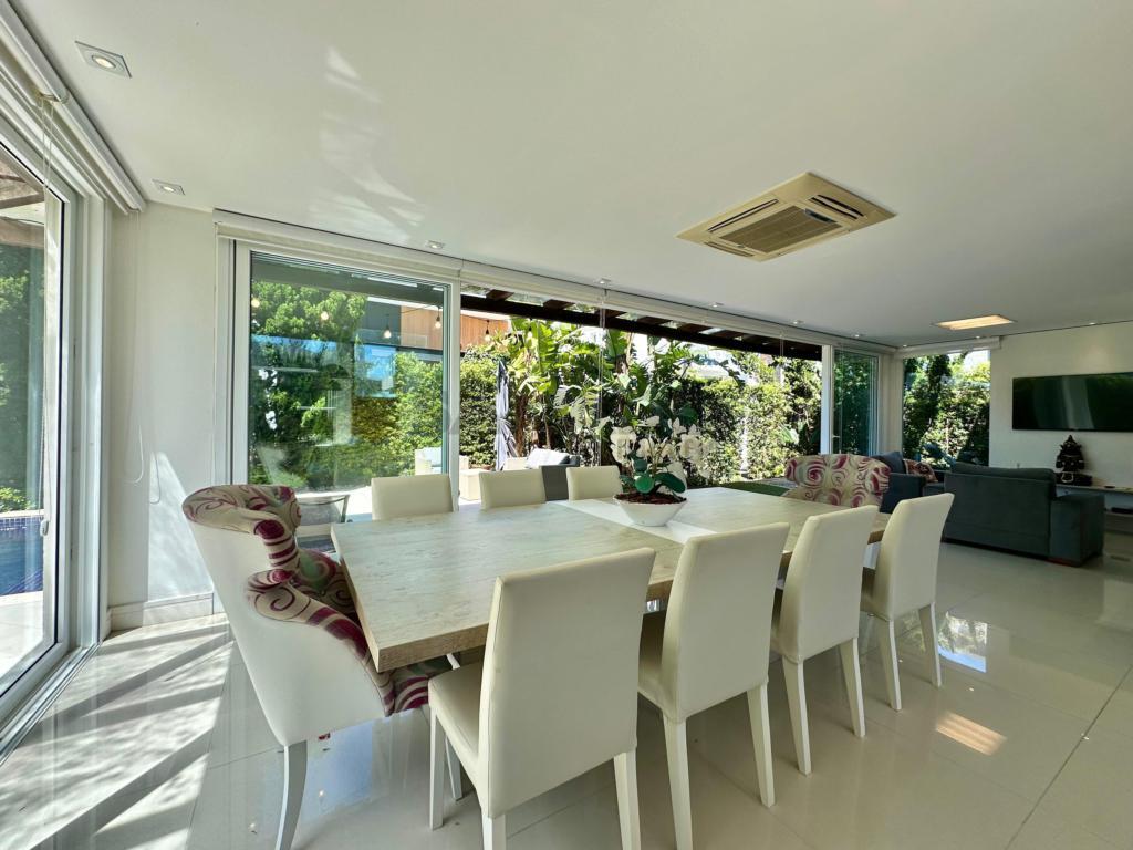 Sobrado com 05 suítes, sendo uma térrea e a master com closet e banheira, lavabo, amplo living com 4 ambientes (sala de estar com lareira, jantar, sala de jogos e e sala de TV. Cozinha gourmet com churrasqueira, área de serviço, dependência de empregada completa, abrigo para dois carros, piscina em concreto. 300m² de área privativa (fora áreas externas como sacadas e abrigo)