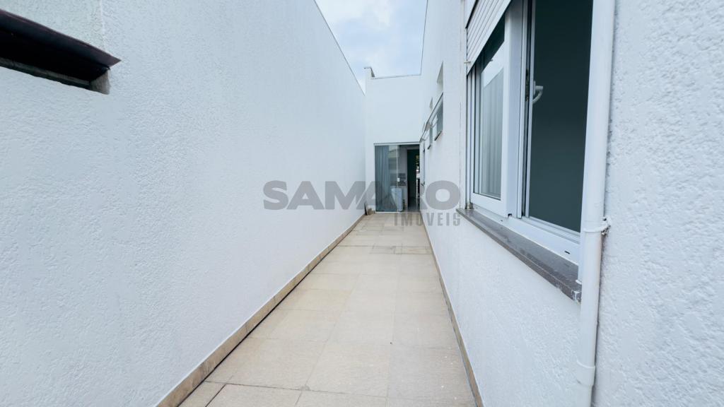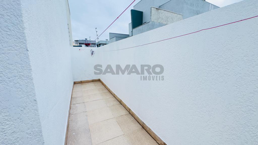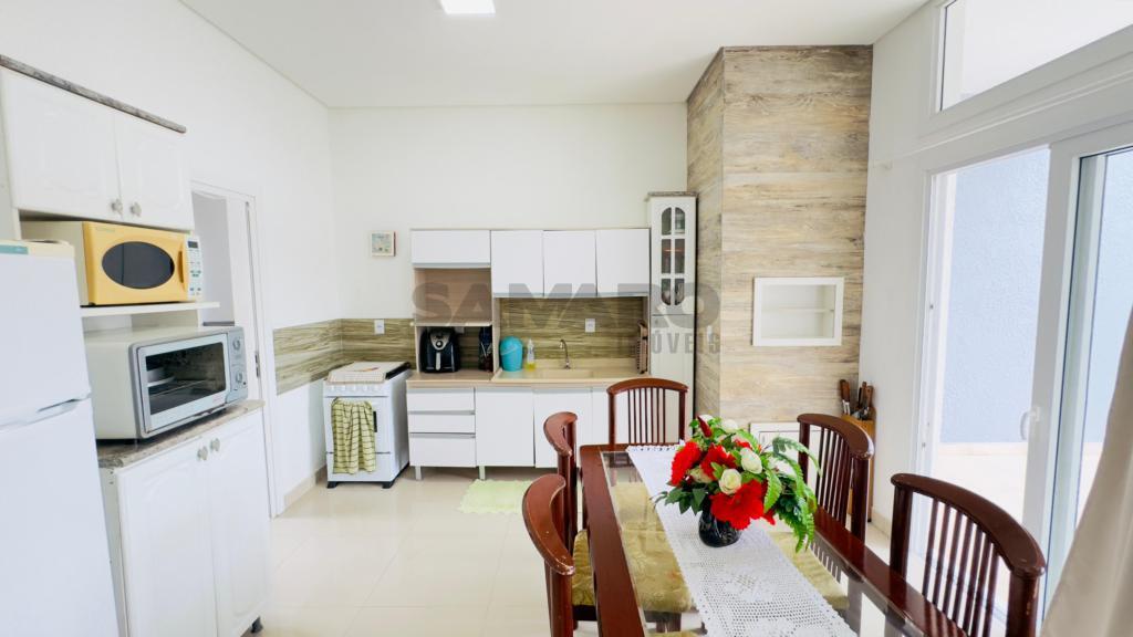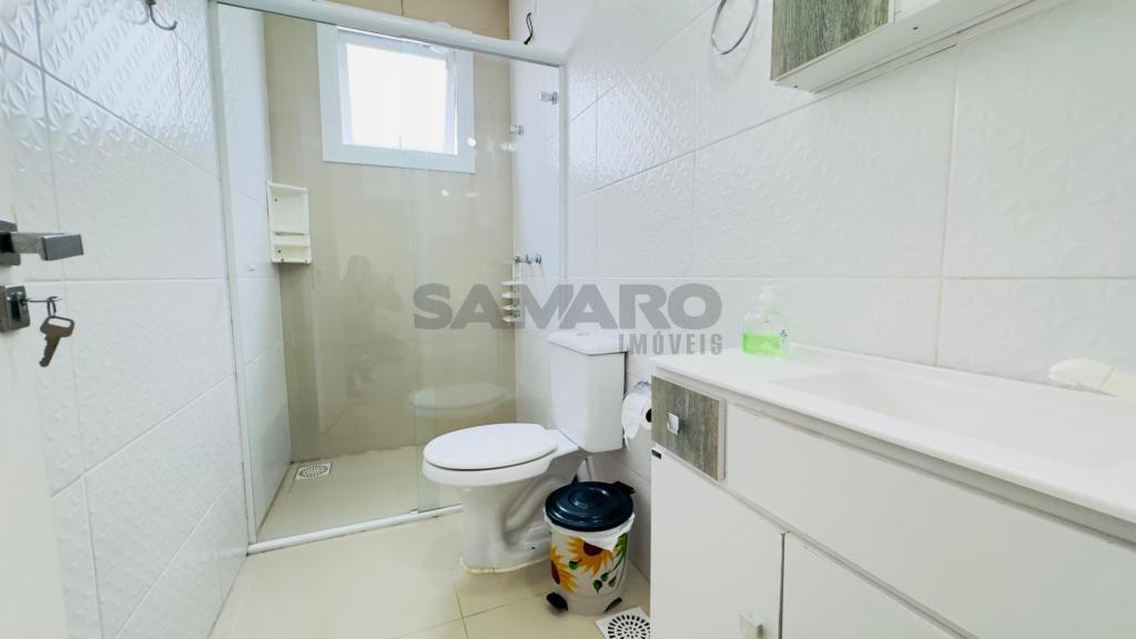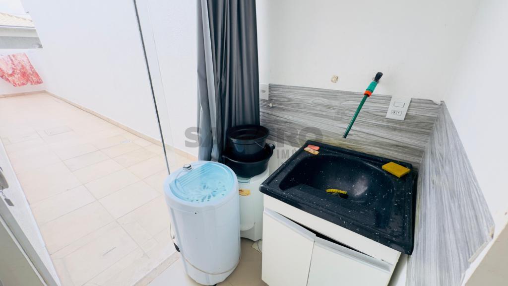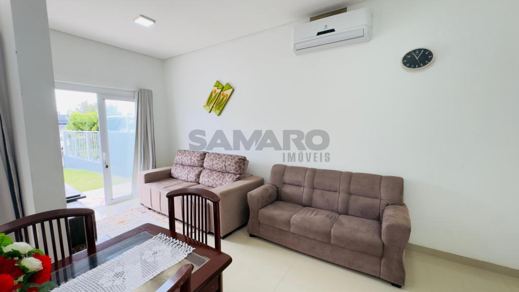 Casa de 2 quartos súites, lavabo, cozinha com churrasqueira, living 2 ambientes e área para descanso na entrada, aberturas em PVC, pé direito alto, piso porcelanato, mobiliado, área de serviço separada, pátio na frente e na lateral calcado, espaço para varal nos fundos, garagem aberta, possibilidade de dois carros no pátio da frente, cerca em PVC.
