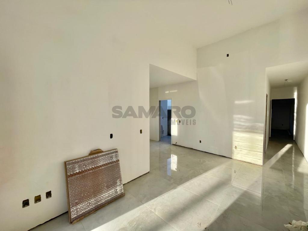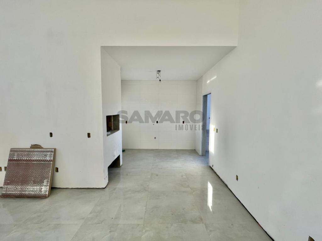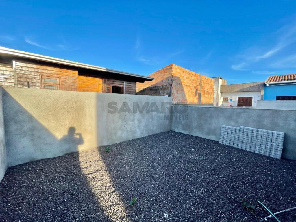 Casa de dois dormitórios sendo um suíte, banheiro social, living integrando estar, jantar ,cozinha estilo americana, churrasqueira.