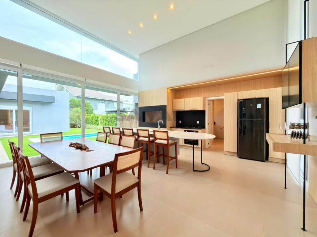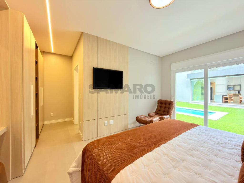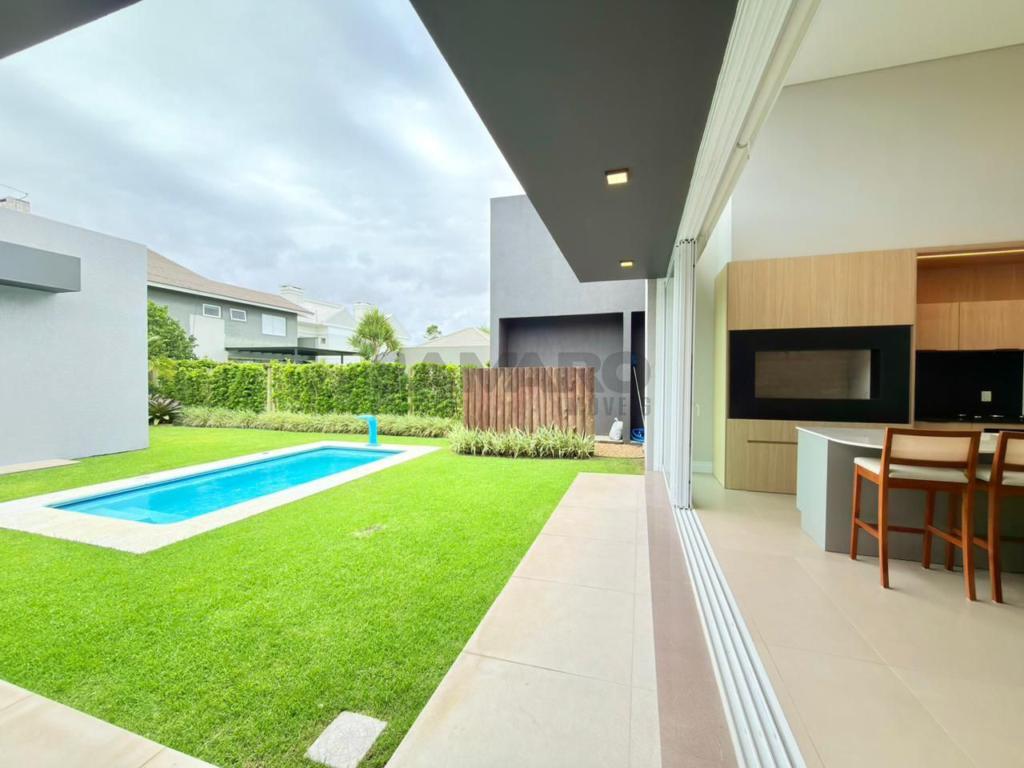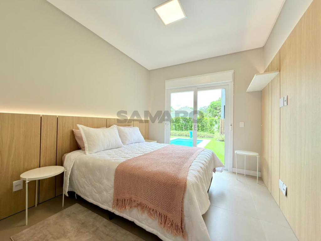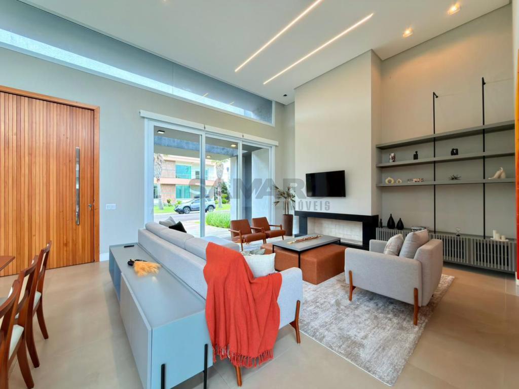 Casa nova, nunca habitada com 224 metros de área construída, frente leste(sol da manhã), com 4 suítes, living amplo integrado ao espaço gourmet, lavabo, área de lavanderia, dependência, espera para ar condicionado split e água quente, persianas automatizadas, vaga de garagem, área externa com pátio amplo e piscina, paisagismo com irrigação e iluminação, mobiliada e decorada.