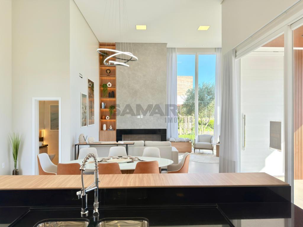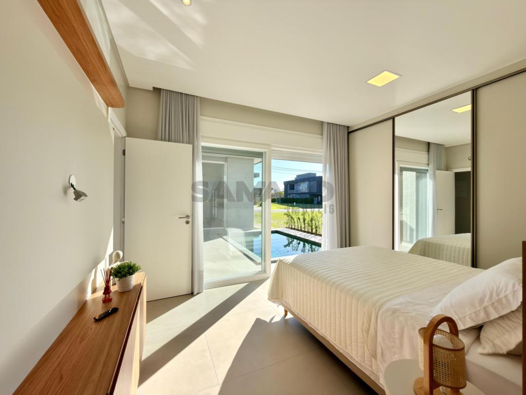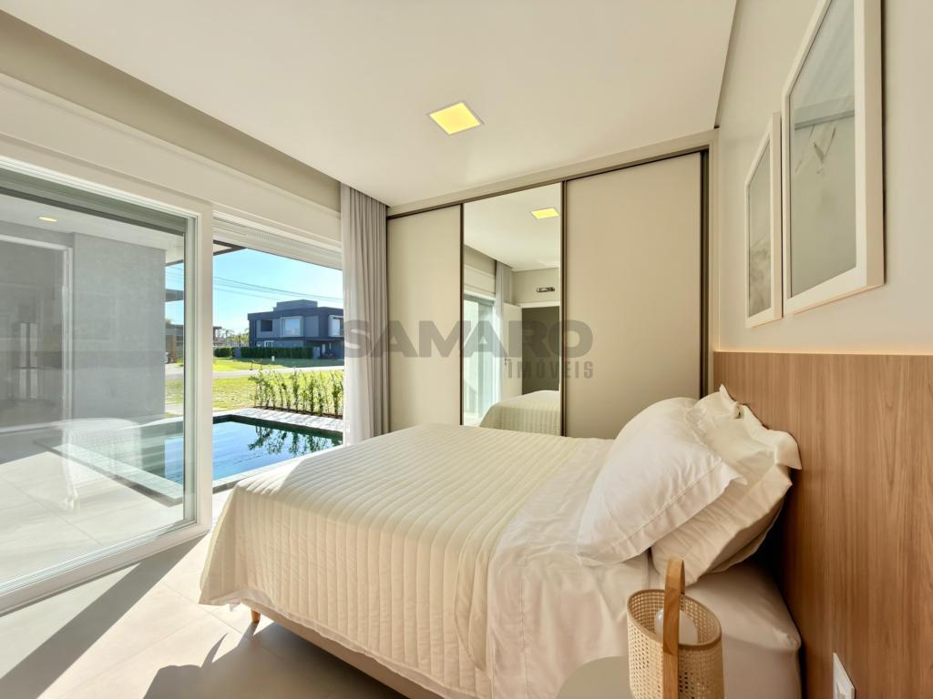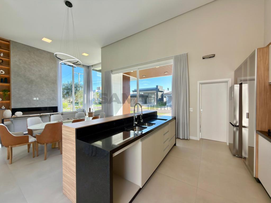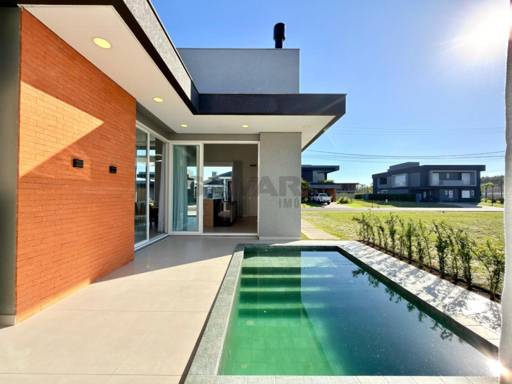 Casa nova, alto padrão construtivo, casa composta de 4 amplas suites, living em dois ambientes, cozinha americana com espaço gourmet e churrasqueira com a possibilidade de integração com a área de lazer externa através de esquadrias de abertura total, toda a área de living com pé direito duplo, piscina, garagem coberta para 02 carros e vagas descobertas para mais 02 carros, área de serviço e lavabo.