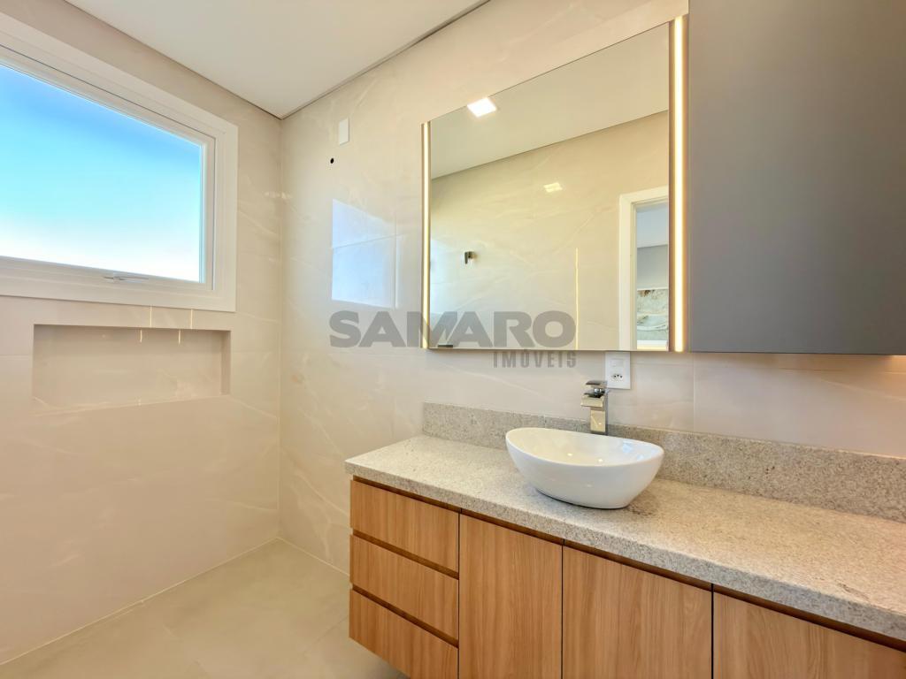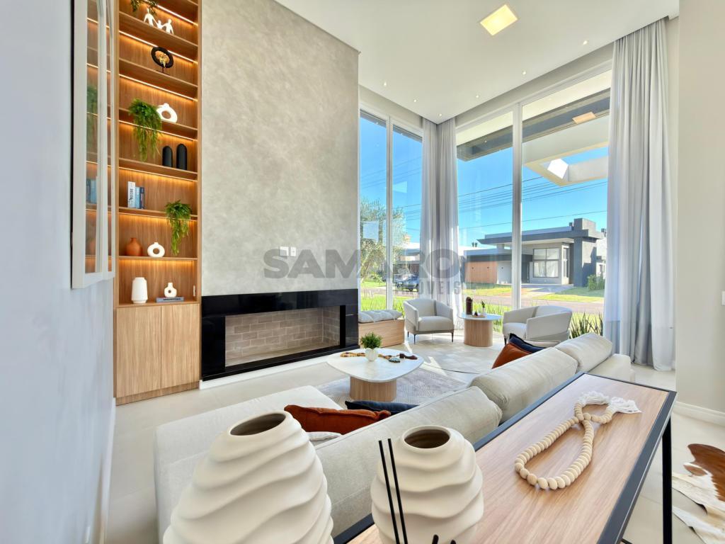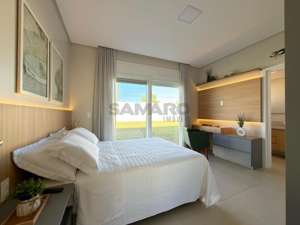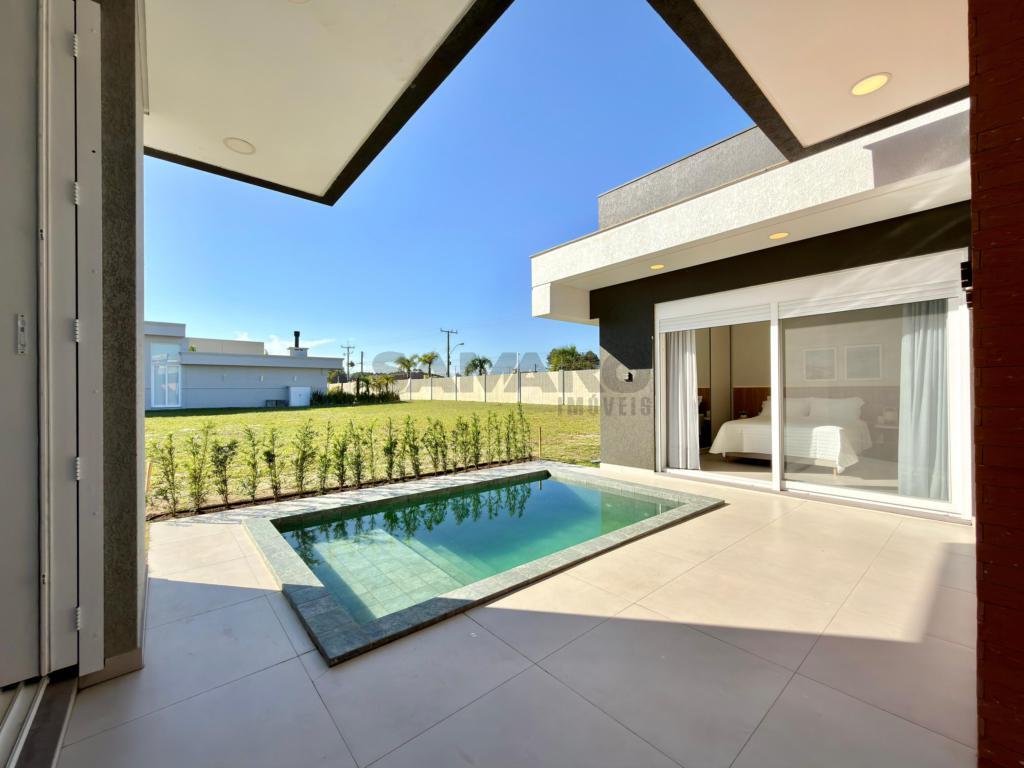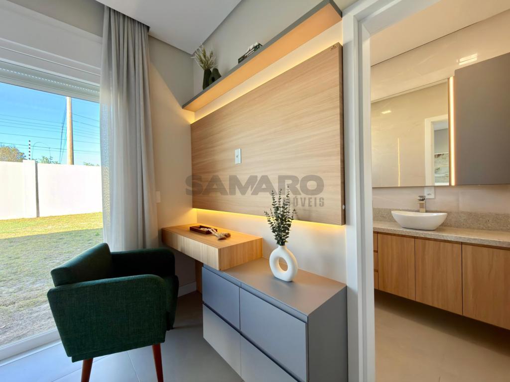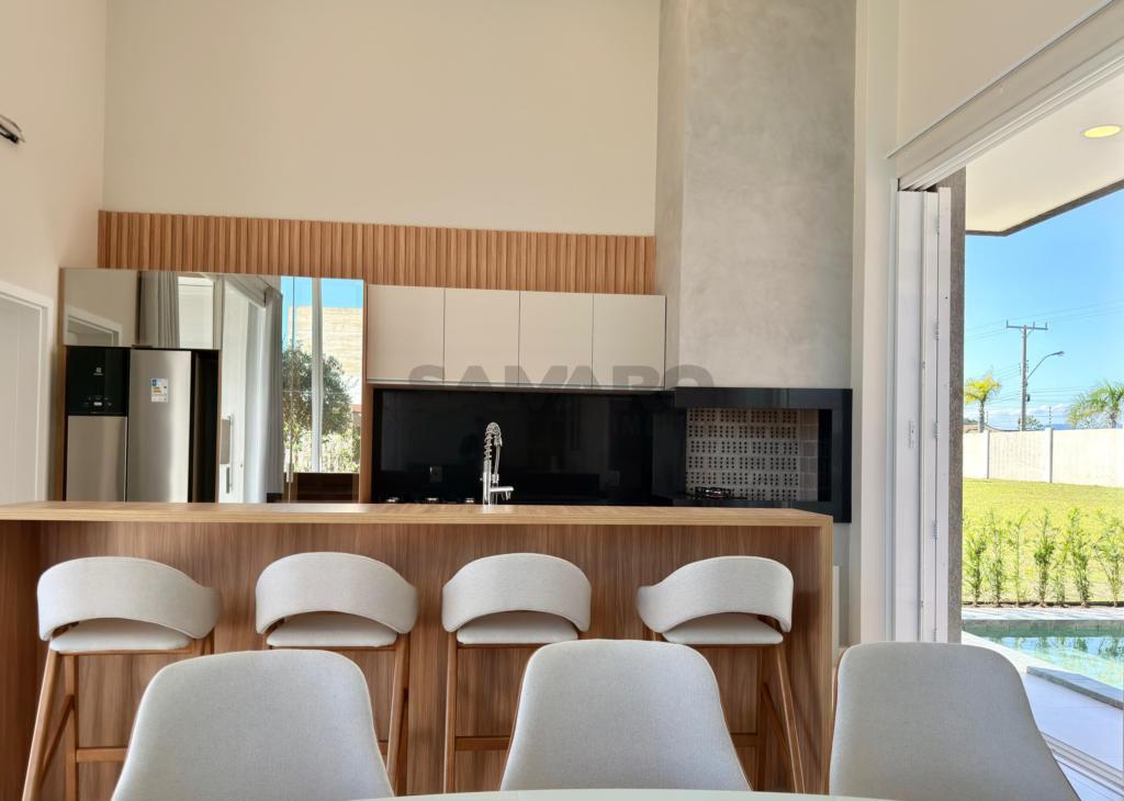 Casa nova, alto padrão construtivo, casa composta de 4 amplas suites, living em dois ambientes, cozinha americana com espaço gourmet e churrasqueira com a possibilidade de integração com a área de lazer externa através de esquadrias de abertura total, toda a área de living com pé direito duplo, piscina, garagem coberta para 02 carros e vagas descobertas para mais 02 carros, área de serviço e lavabo.