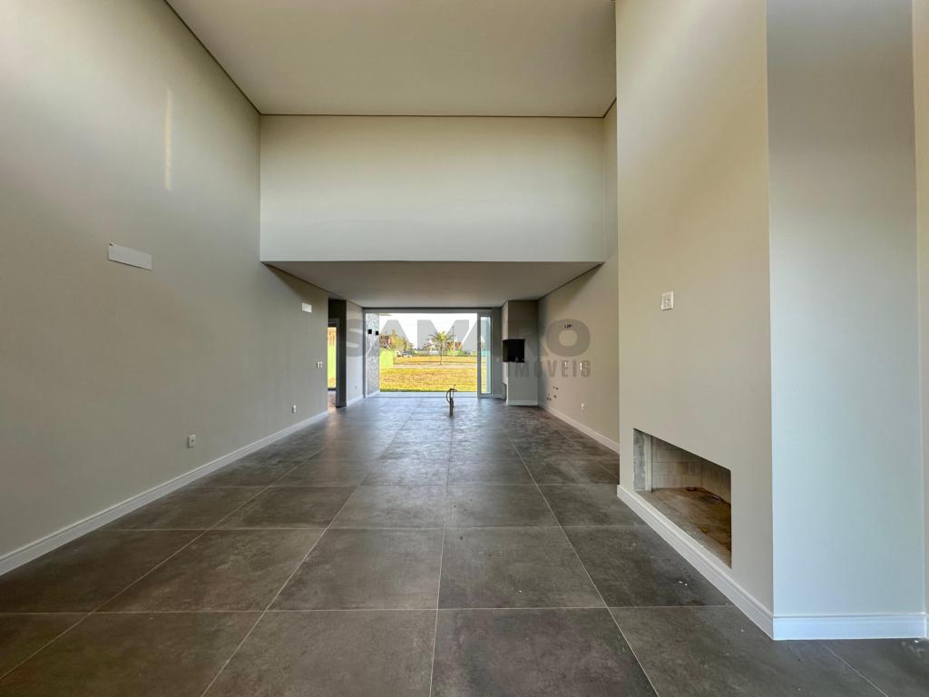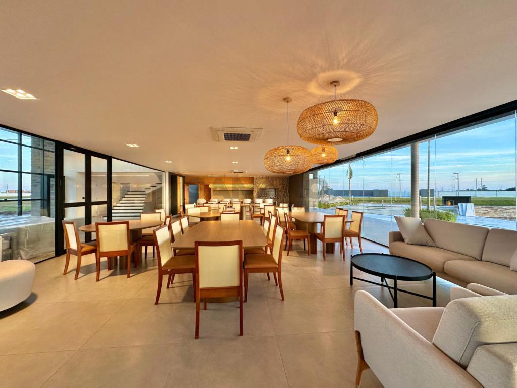 Casa baixa com 04 suites, lavabo, living amplo com 55,00m2 em 3 ambientes, sala com pé direito duplo, cozinha estilo americana, esquadrias internas e externas em PVC, piso porcelanato 1,00x1,00, fachada com revestimento em ripado.