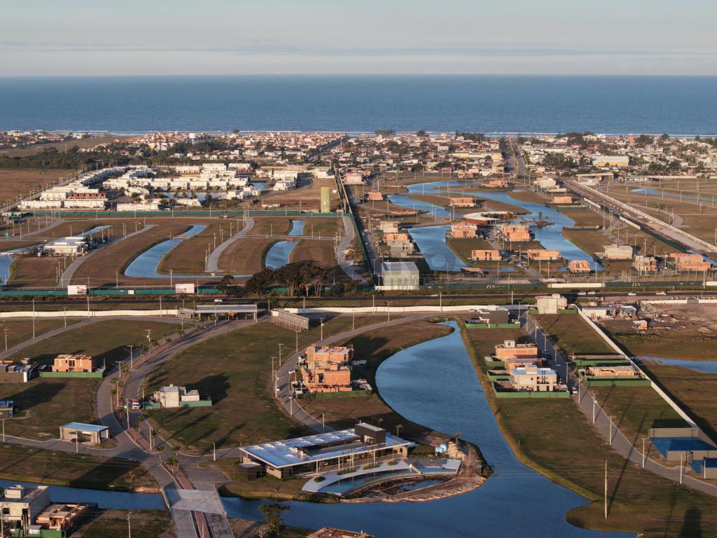 Condominio com pórtico com guarita blindada, estacionamento para visitantes, deck com mirante, playground, ciclovia, quiosques, praça de esportes, mercado, quadra de Beach Tênis, clube house com salão de festas, sala de jogos, babyCare, hangout adolescente e sauna, academia de ginastica e rooftop, piscina adulto e infantil, prainha, horta comunitária, pomar, quadra de tênis, quadra de streetball.