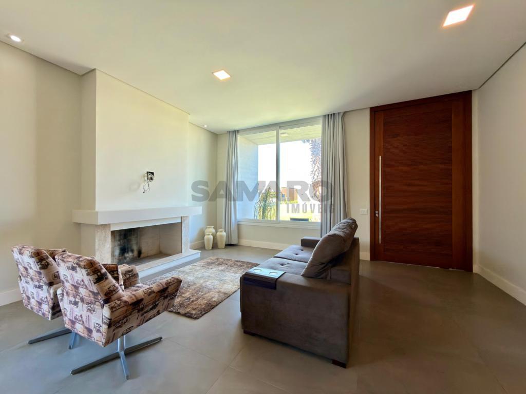 Casa com 200 metros de área privativa, 03 suítes, lavabo, living em 02 ambientes integrados, lareira, área de lavanderia ampla e separada, varanda, com pátio com paisagismo e iluminação, garagem para 02 carros, espera para água quente e ar condicionado split, aberturas em pvc, fachada com iluminação, mobiliada e pronta para uso.