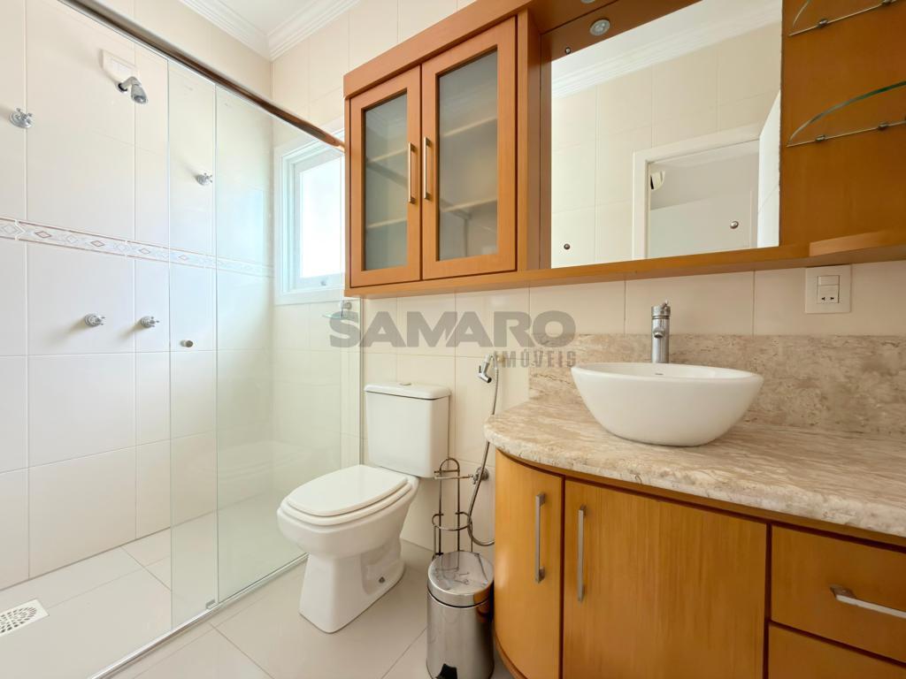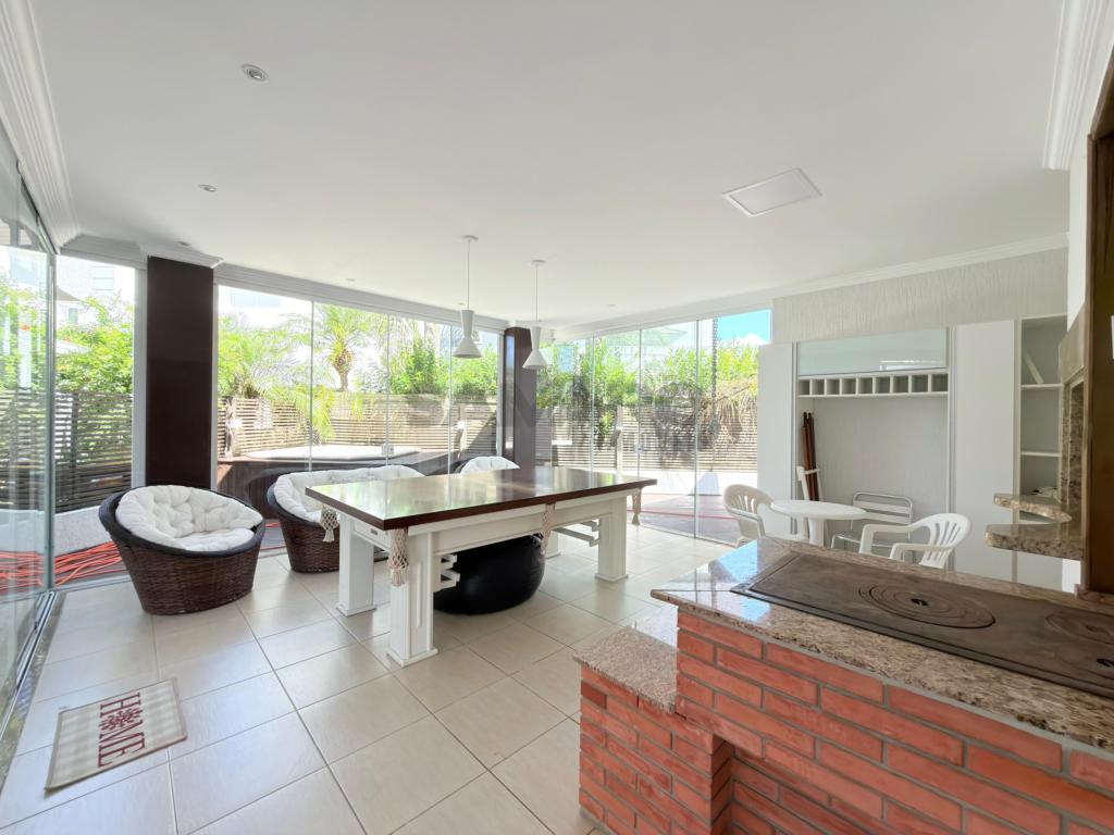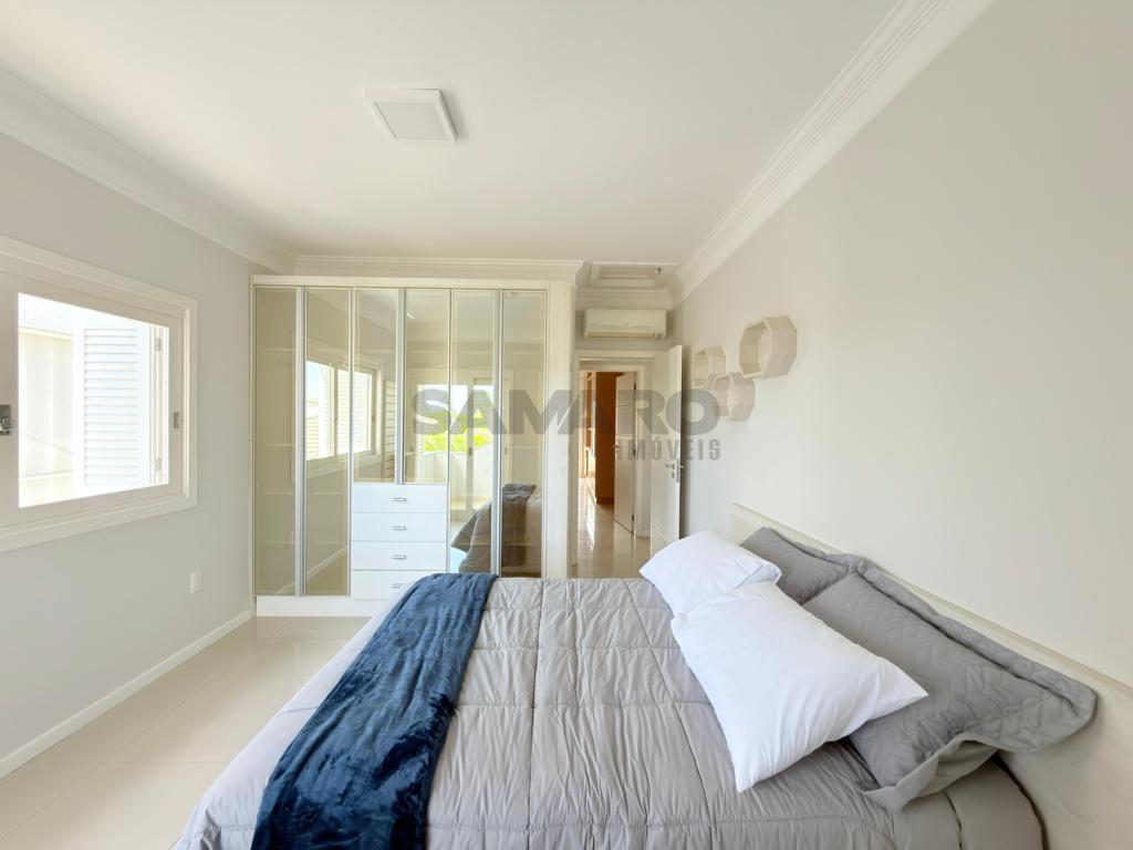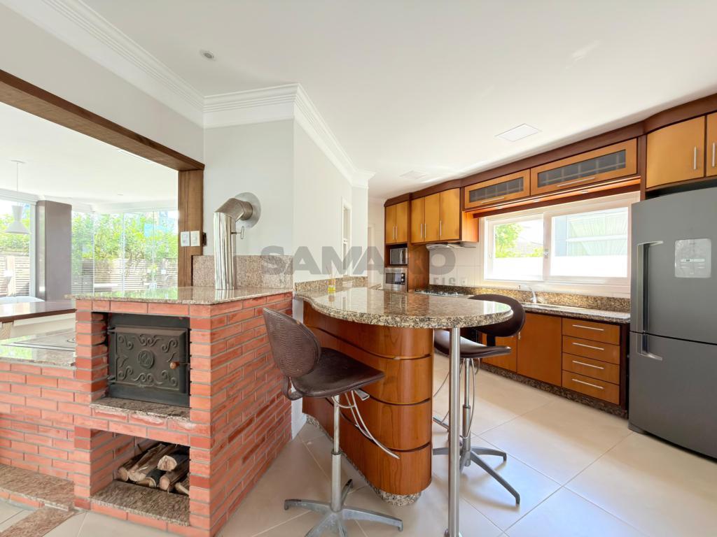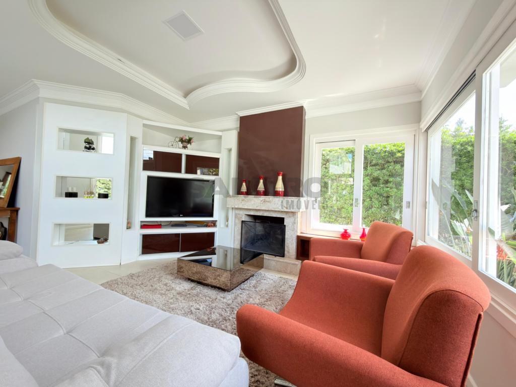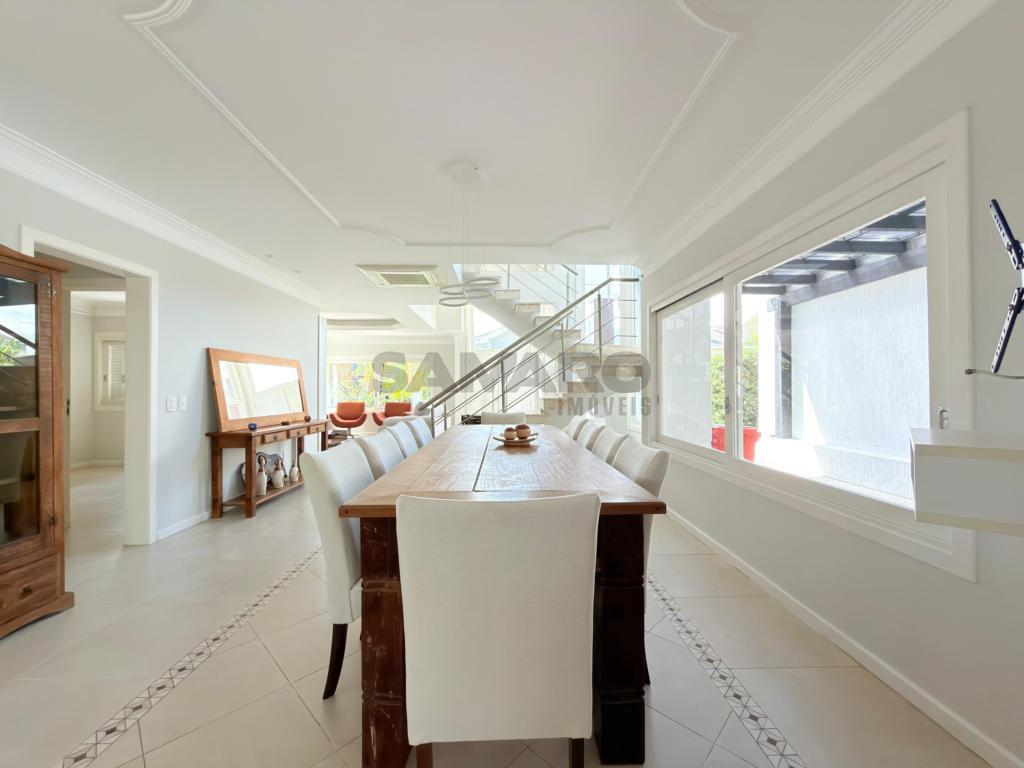 Casa em condomínio fechado de alto padrão com aproximadamente 280 metros, 4 suítes(sendo uma térrea), living amplo em três ambientes integrados, espaço gourmet com churrasqueira, e fogão campeiro, cozinha estilo americana, área de lavanderia, vaga de garagem, pátio com paisagismo e jacuzzi, todos os ambientes climatizados, água quente e uma excelente iluminação natural.