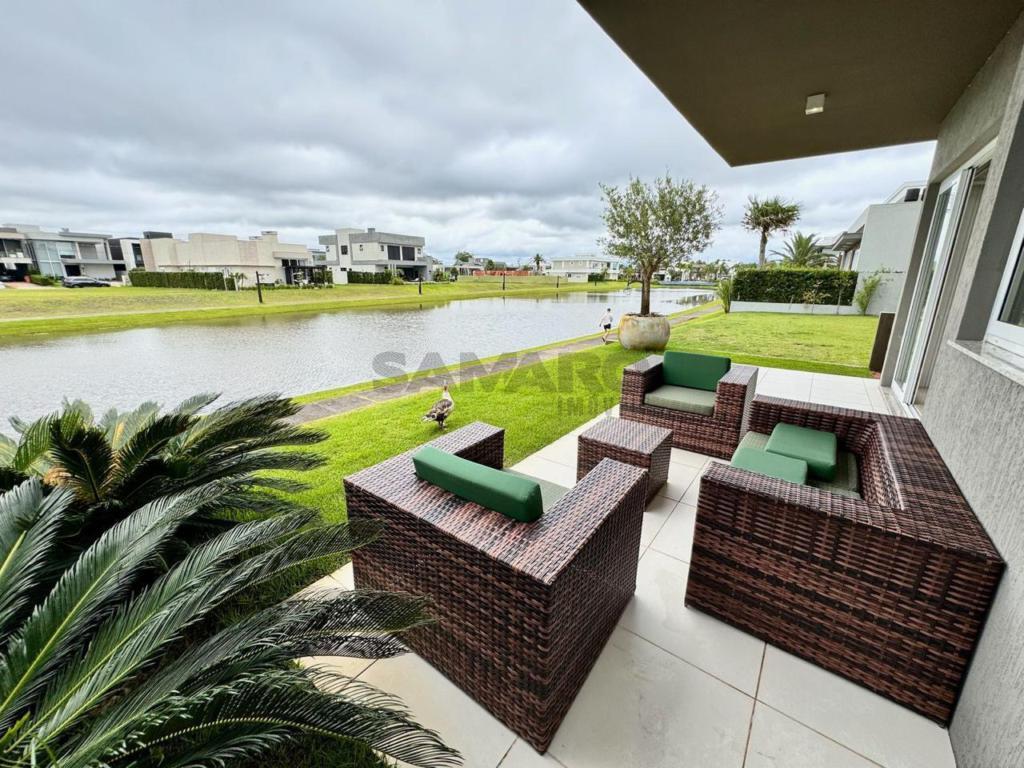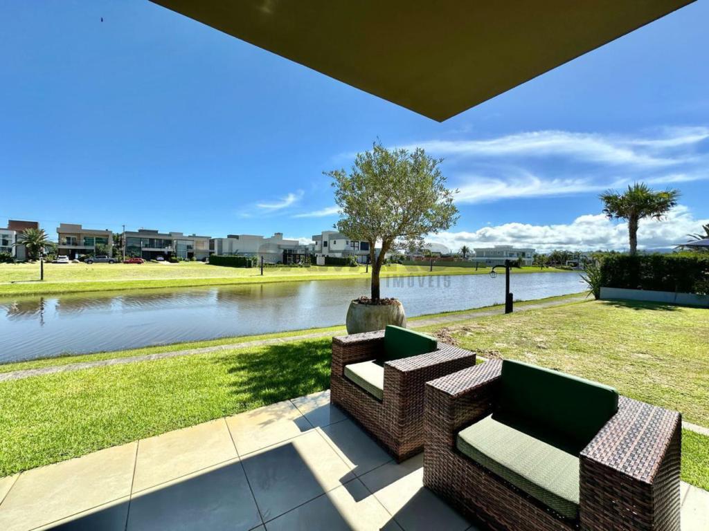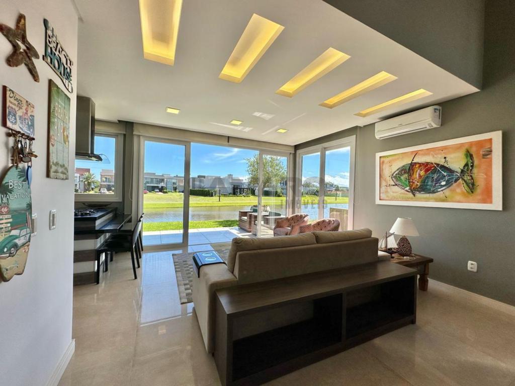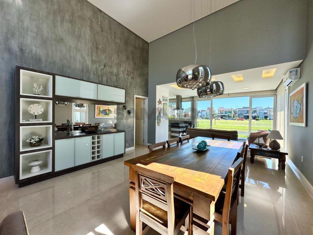 3 suítes, lavabo, sala de estar com lareira, sala de jantar, cozinha americana, lavanderia, abrigo para 2 carros, fundos para lago, muito bem mobiliada, top.