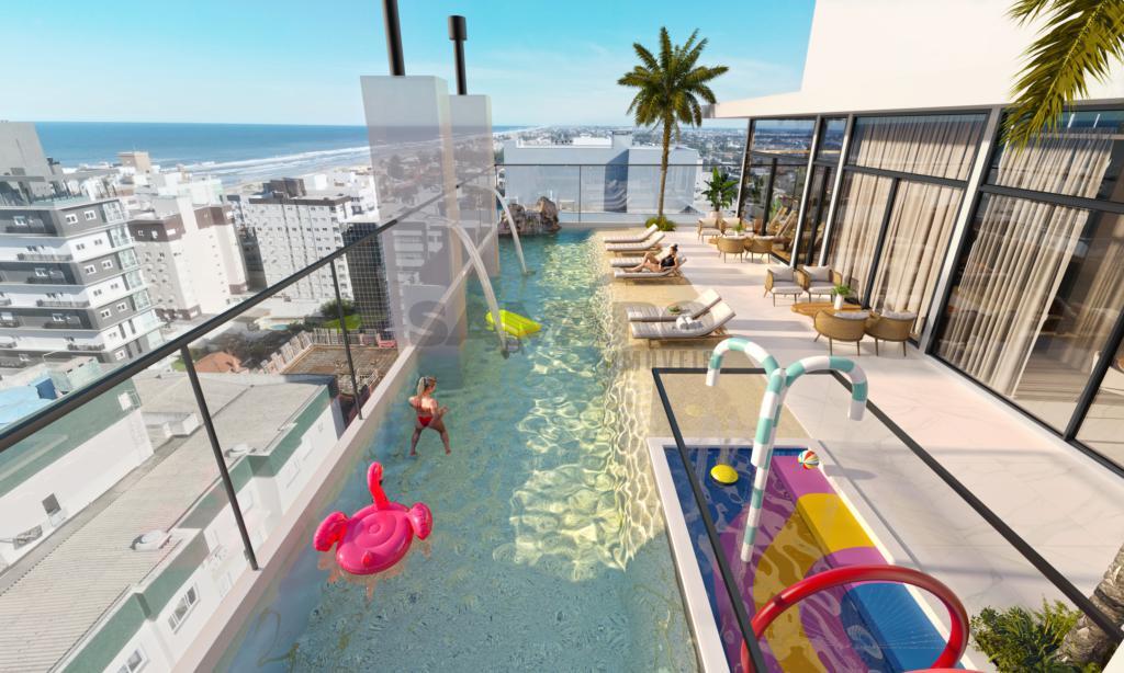 Com fachada moderna, o prédio é 100% revestido em plaquetas e hall de entrada decorado, o Palm Beach Exclusive Homes apresenta uma estrutura completa de lazer no rooftop mobiliado e decorado, com praia artificial, 2 espaços gourmet, espaço fitness, sala gamer, piscina térmica e fire place que criam um ambiente vibrante e perfeito para momentos inesquecíveis.